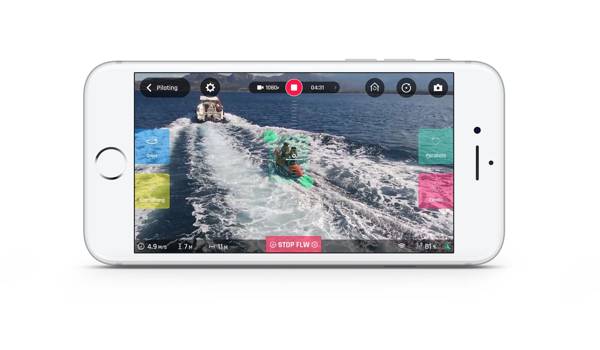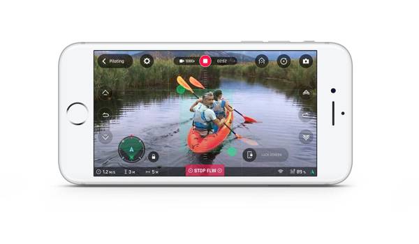 Una volta in volo, utilizzando l’interfaccia user friendly dell’app, il pilota può impostare l’altitudine di volo, la distanza dal soggetto (minimo 5 metri), l’angolo di visione e impostare se stesso come il soggetto da tracciare. Una volta che i parametri sono impostati, lo smartphone non è più necessario. È possibile quindi tenerlo in tasca o nello zaino.