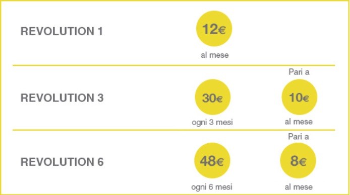• Creami Revolution 3: ha un costo anticipato di 30 euro invece di 36 euro per tre mesi;