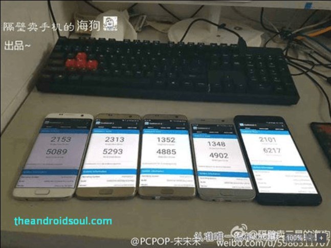 Trovate sul web, abbiamo quelle che potrebbero essere le prime foto del prossimo Galaxy Note 7 in modalità operativa, di fianco ai suoi fratelli più piccoli Galaxy S7 e S7 Edge in alcune edizioni diverse: Corea, Giappone e Hong Kong. Non solo, ma le due foto, confrontano i risultati dei benchmark, e così ci danno qualche suggerimento sulle caratteristiche di visualizzazione del prossimo blockbuster phablet di Samsung.