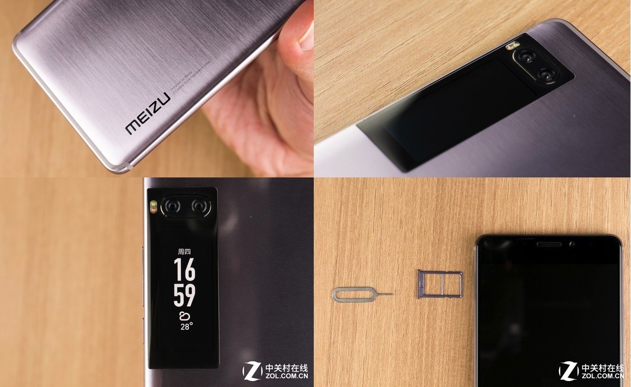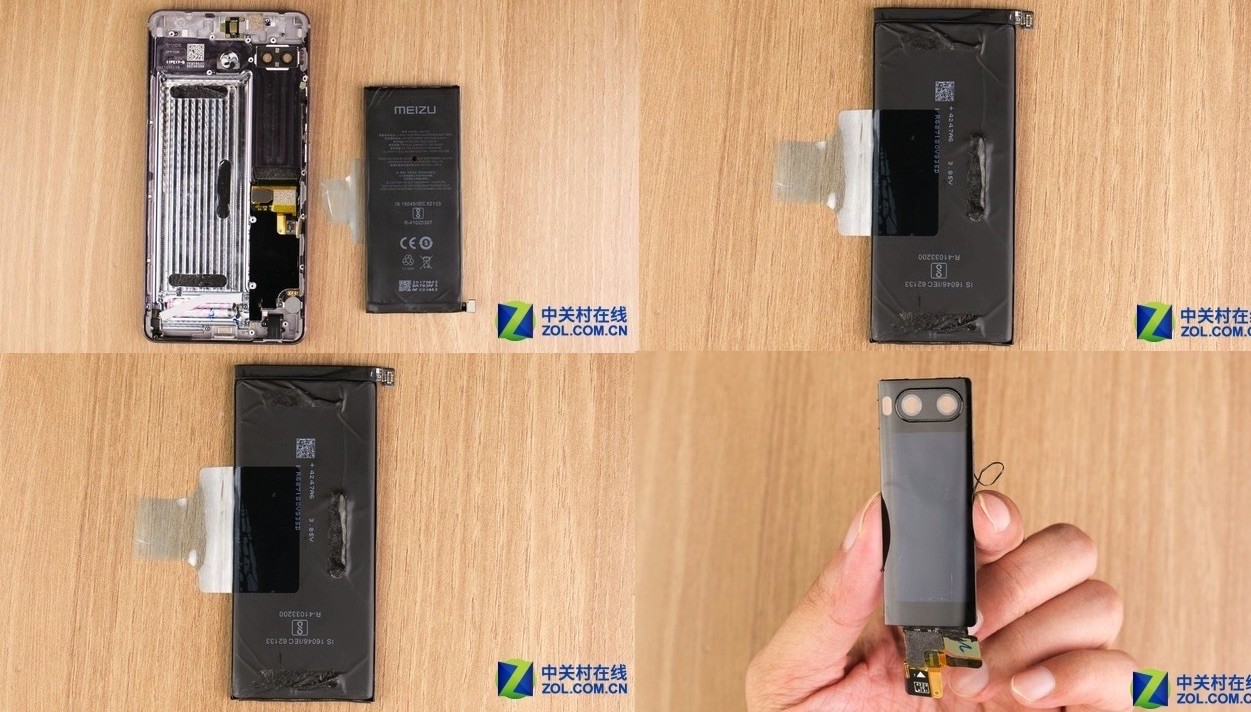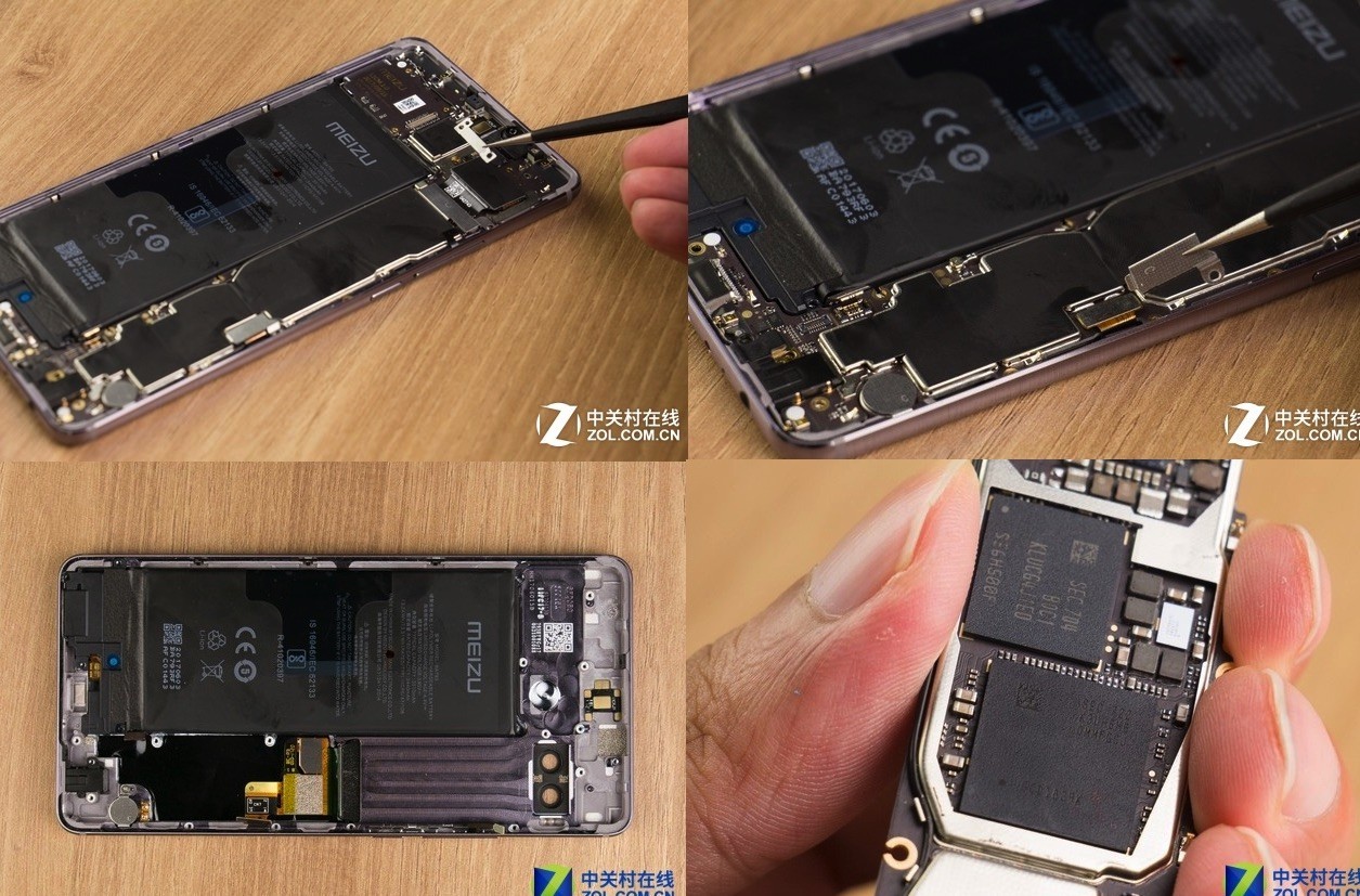 Il pannello posteriore contiene la scheda madre ed il display secondario. Da qui, si scopre che Meizu ha utilizzato un chipset a 10nm MediaTek Helio X30, RAM LPDDR4 di Samsung ed un modulo di memorizzazione UFS2.1.