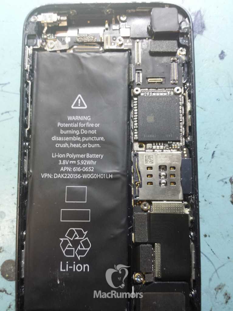 Appare in rete una nuova foto raffigurante un prototipo del prossimo iPhone 5S, la foto mostra chiaramente il tipo di hardware e la parte posteriore del dispositivo. Ovviamente non abbiamo modo di legittimare queste immagini ma nulla toglie che possano essere vere. Le foto mostrano la disposizione degli elementi e dei connettori sulla scheda madre e il led della fotocamera posteriore che ha una forma ovale indice della presenza di un flash a doppio led. Si vocifera inoltre che uno di questi due led abbia una luce bluastra, cosa non rilevabile dalla foto. La batteria alloggiata all’interno della scocca mostra una capacità di 5.95 Watt-ora, che porterebbe notevoli miglioramenti alla durata totale del dispositivo. L’alloggiamento del processore non è stato contrassegnato e non siamo sicuri se questo chip sia un A7 anche se da alcune note di MacRumors il silicio è stato prodotto nel mese di ottobre del 2012 e potrebbe essere SoC A6 messo lì a scopo di test.