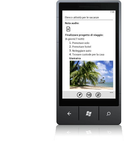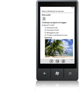 Raccogliere appunti ovunque ci si trovi con Microsoft OneNote Mobile. Creare rapidamente un elenco o corredare le note con immagini e messaggi vocali. Visualizzare o aggiornare le note sul telefono, sul PC o nel Web browser, che saranno sempre sincronizzati.2