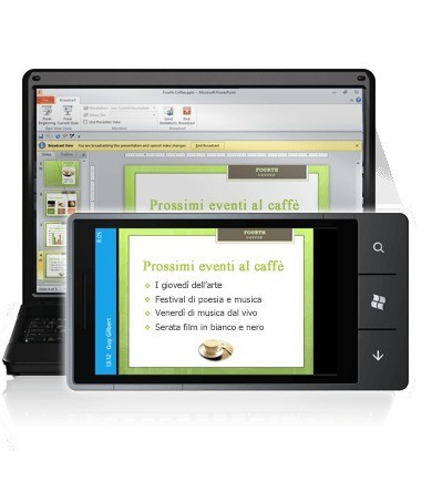 Partecipare alla trasmissione di una presentazione di Microsoft PowerPoint o lavorare su documenti e note di Office condivisi archiviati in un sito di Microsoft SharePoint 2010, tutto ciò utilizzando il telefono.