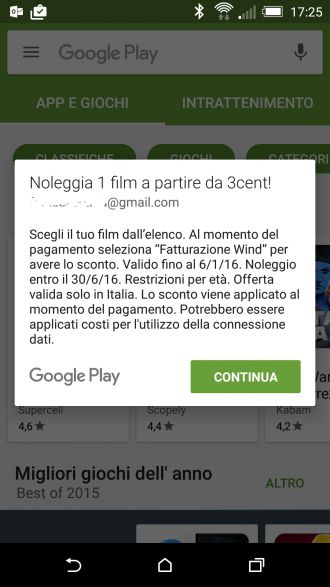 Home News Promozione Wind: film a 3 centesimi su Google Play