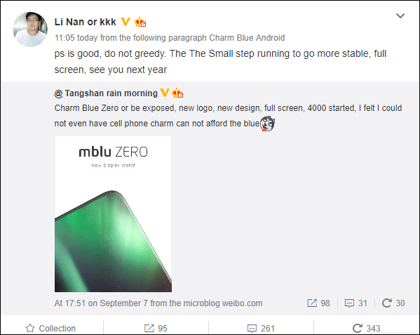 Il prossimo anno Meizu lancerà un nuovo dispositivo senza cornici della linea Blue Charm