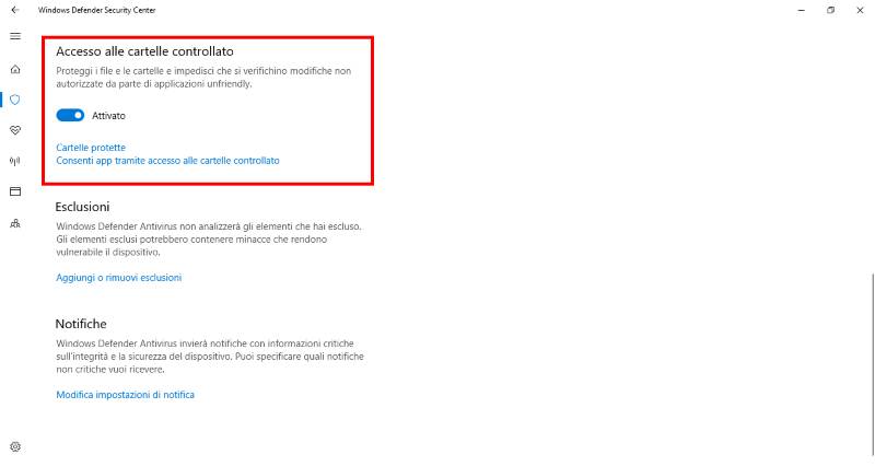 Il sistema di protezione “Accesso alle cartelle controllato” di Windows 10 FCU è stato progettato non solo per difendere cartelle e file dai ransomware ma anche per non consentire la modifica indesiderata di questi dati da programmi potenzialmente dannosi.