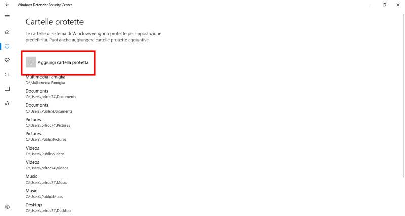Per impostazione predefinita, il sistema di controllo proteggerà solo le cartelle Document, Immagini, Video, Musica, Desktop e Preferiti dell’utente. E’ possibile fortunatamente aggiungere altre cartelle alla protezione da possibili attacchi, semplicemente seguendo questi passaggi: