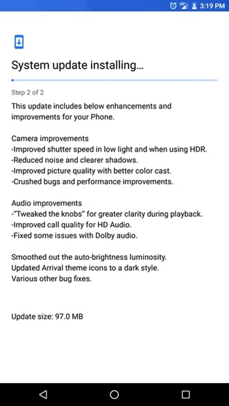 Per quanto riguarda l’audio, la qualità della chiamata per HD Audio è stata migliorata e sono stati risolti alcuni problemi inerenti al Dolby Audio. In più, è stato migliorato anche il suono durante la riproduzione audio. Il resto delle modifiche include miglioramenti per la luminosità automatica, aggiornamenti per il tema Arrival ed altri bug fix. L’aggiornamento pesa 97MB. Il sistema operativo rimane sempre Android 7.1.1 Nougat, mentre le patch di sicurezza Android sono aggiornate al 5 ottobre 2017.