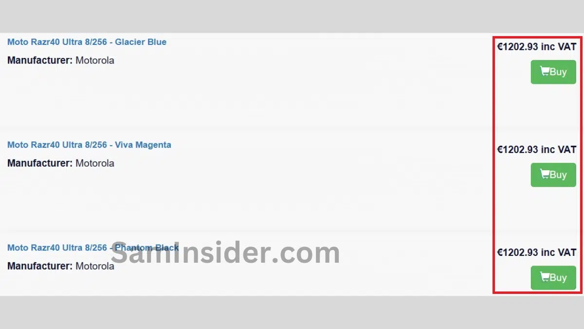 Secondo l’elenco, la variante da 8 GB + 256 GB di Motorola Moto Razr 40 Ultra avrà un prezzo di circa 1200 euro , leggermente superiore al suo rivale, il Galaxy Z Flip 4, che costa 1159 euro per la stessa configurazione.