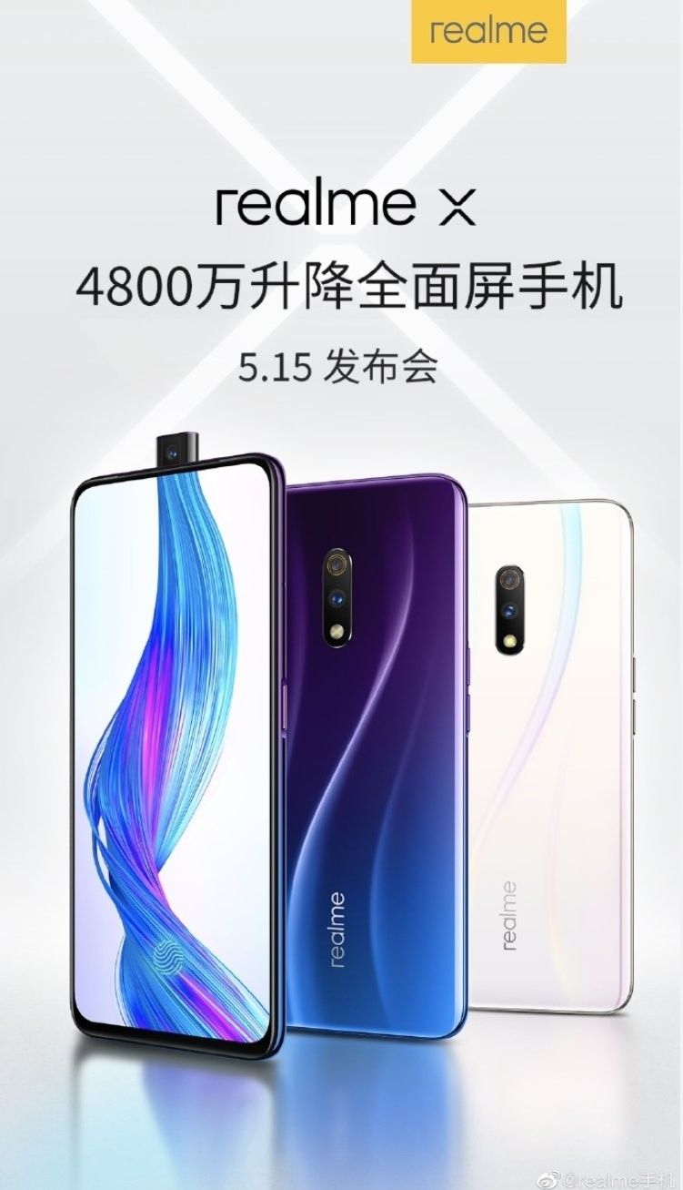 Il nuovo dispositivo in questione, chiamato Realme X, è stato presentato in leggero anticipo dall’azienda con alcune immagini ufficiali che mettono in evidenza la pop-up camera frontale del dispositivo, e il doppio sensore fotografico situazione nella parte posteriore.