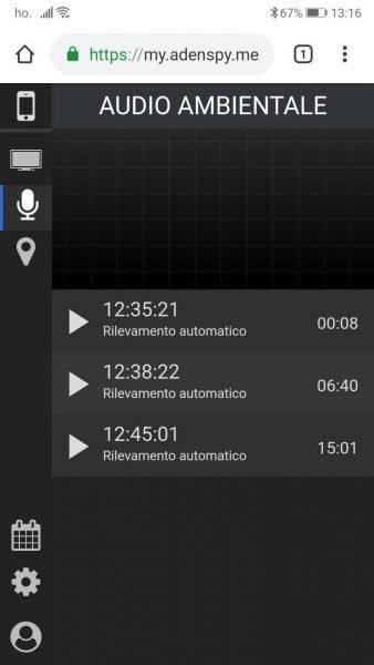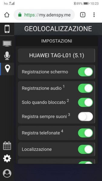 - Una volta inserito, il telefono risulterà nella lista dispositivi da monitorare e dopo un tempo di attesa che può variare dai 10 fino ai 45 minuti, il telefono monitorato inizierà ad inviare le registrazioni sull’account.