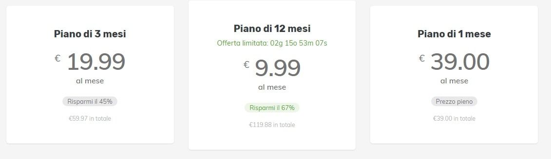 - Piano di 3 Mesi al costo di 117,00€ 19,90€ al mese (Risparmi il 45%)