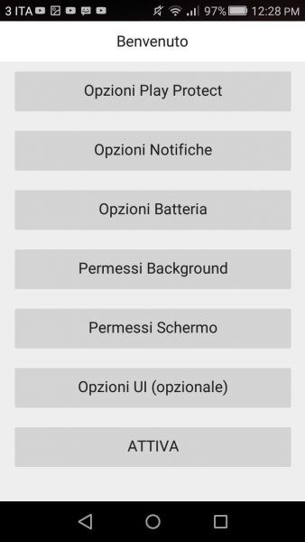 Serve un minimo di configurazione da effettuare sul dispositivo da controllare: dopo aver installato il file apk di AdenSpy, si aprirà un menu dove dovremo dare tutte le abilitazioni.