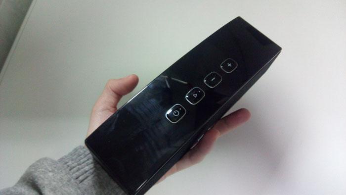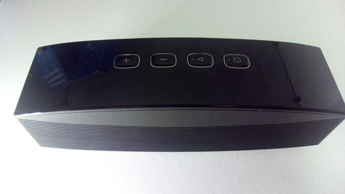 Il look è anche molto elegante grazie ad una forma futuristica ed un inserto tutto lucido in stile vetro sulla parte posteriore. Un rivestimento superiore che trattiene le impronte, ma se volete la raffinatezza estetica bisogna pur scendere a un compromesso. L’ottimo look rende questo altoparlante Bluetooth anche un buon elemento di arredo. Sulla parte superiore dello speaker Bluetooth Anker Premium troviamo quattro tasti: accensione, play/stop (questi hanno anche degli indicatori LED per indicare il pairing e lo stato di accensione) ed i tasti per il volume.