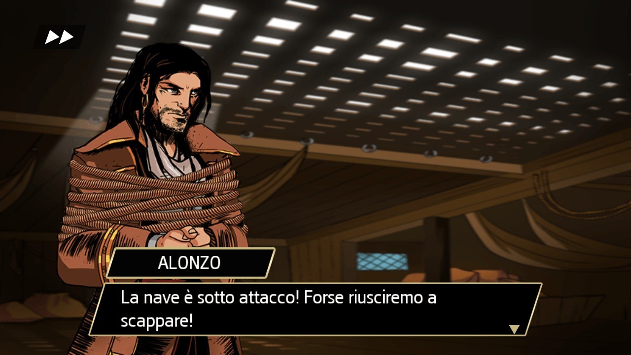 Dopo tanta attesa, ecco il titolo della Ubisoft che attendevamo: Assassin’s Creed – Pirates. Nel Market Android dal 5 dicembre, il gioco si presenta subito con il classico clima della serie: qualche filmato in una ottima e dettagliata grafica, fa ingresso alla storia del nostro personaggio, e si capisce subito, che non è il classico Assassin’s che tutti conosciamo. Non c’è Altäir da far muovere, correre, saltare, ma un pirata al timone di una nave: il titolo si basa tutto a bordo del nostro galeone, tra battaglie con altre navi a suon di cannonate, sfide a tempo con abilità di guida nautica, ricerca di tesori e territori inesplorati, missioni principali e secondarie da svolgere, per guadagnare denaro ed acquistare nuovi potenziamenti. Una serie infinita di possibilità di gioco,possibilità di comprare galeoni sempre più grandi e potenti, reclutare mozzi, pirati e marinai, sbloccare personaggi con oggetti ripescati in mare,missioni ripetibili a nostro piacimento, dànno a questo titolo una longevità quasi infinita. Il playmode è semplice, la guida è fluida come nel caso dell’utilizzo del timone, che sente la sensibilità del tocco, facendo effettuare virate dolci o estreme in casi di collisioni imminenti,o nella possibilità di aumentare la velocità con lo spiegamento di più vele, e nei combattimenti dove la fase di attacco e difesa, è facile ed intuitiva. Forse qualche nostalgico storcera’ un po’ il naso, nel trovare un gioco completamente diverso dai precedenti, e non riuscirà a capire il motivo per il quale la casa produttrice , abbia utilizzato il nome di Assassin’s Creed per una splendida copia (ma molto di più) del videogame Pirata dei Caraibi… Poi un personaggio misterioso e con volto nascosto, ci farà visita molto spesso durante le nostre missioni;e quel volto tanto familiare intravisto sotto il cappuccio, regala alla Ubisoft un altro capolavoro della serie…