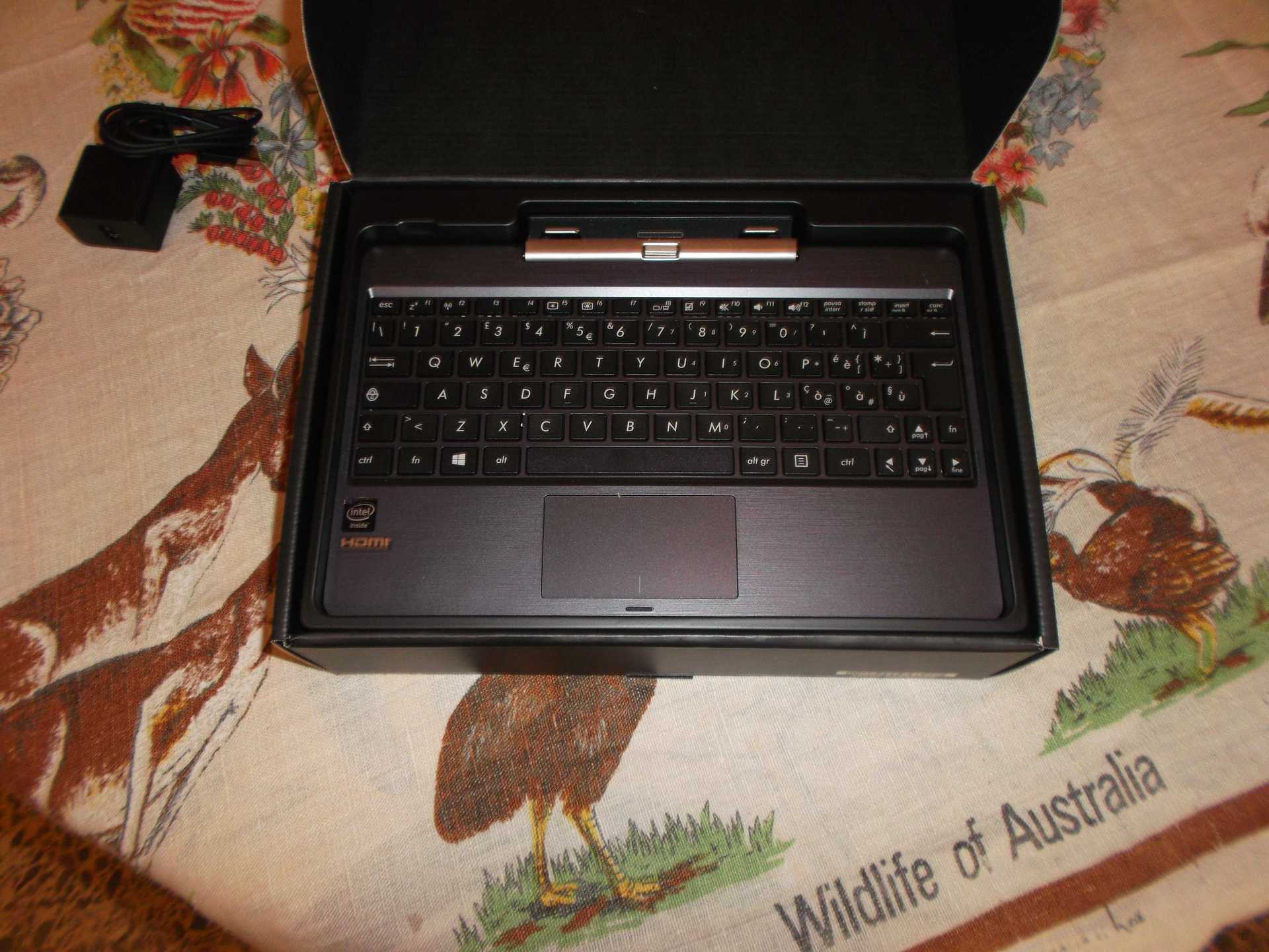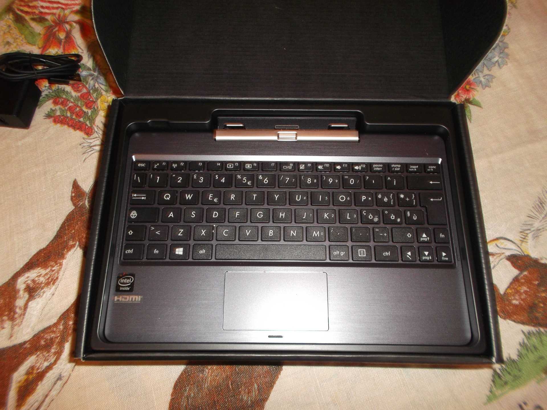 Aprendo la confezione ci troviamo davanti il tablet in bella mostra, la tastiera/docking posizionata negli appositi vani, il caricabatteria e il cavo USB. Il tutto ovviamente protetto con delle robuste pellicole plastiche.