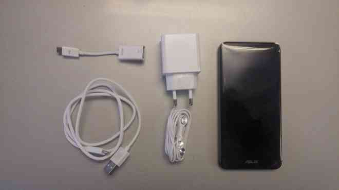 All’interno della confezione ricevuta da ASUS, abbiamo notato fin da subito la cura con cui la compagnia vuole presentare il dispositivo: non solo il telefono e delle cuffie in-ear con gommini di varie dimensioni, troviamo il classico carica batteria rapido ed un cavo USB – Micro USB e una gradita sorpresa rappresentata dal un cavo OTG – USB utile al collegamento di chiavette USB per il passaggio dei dati o per l’esecuzione di Backup di sorta.