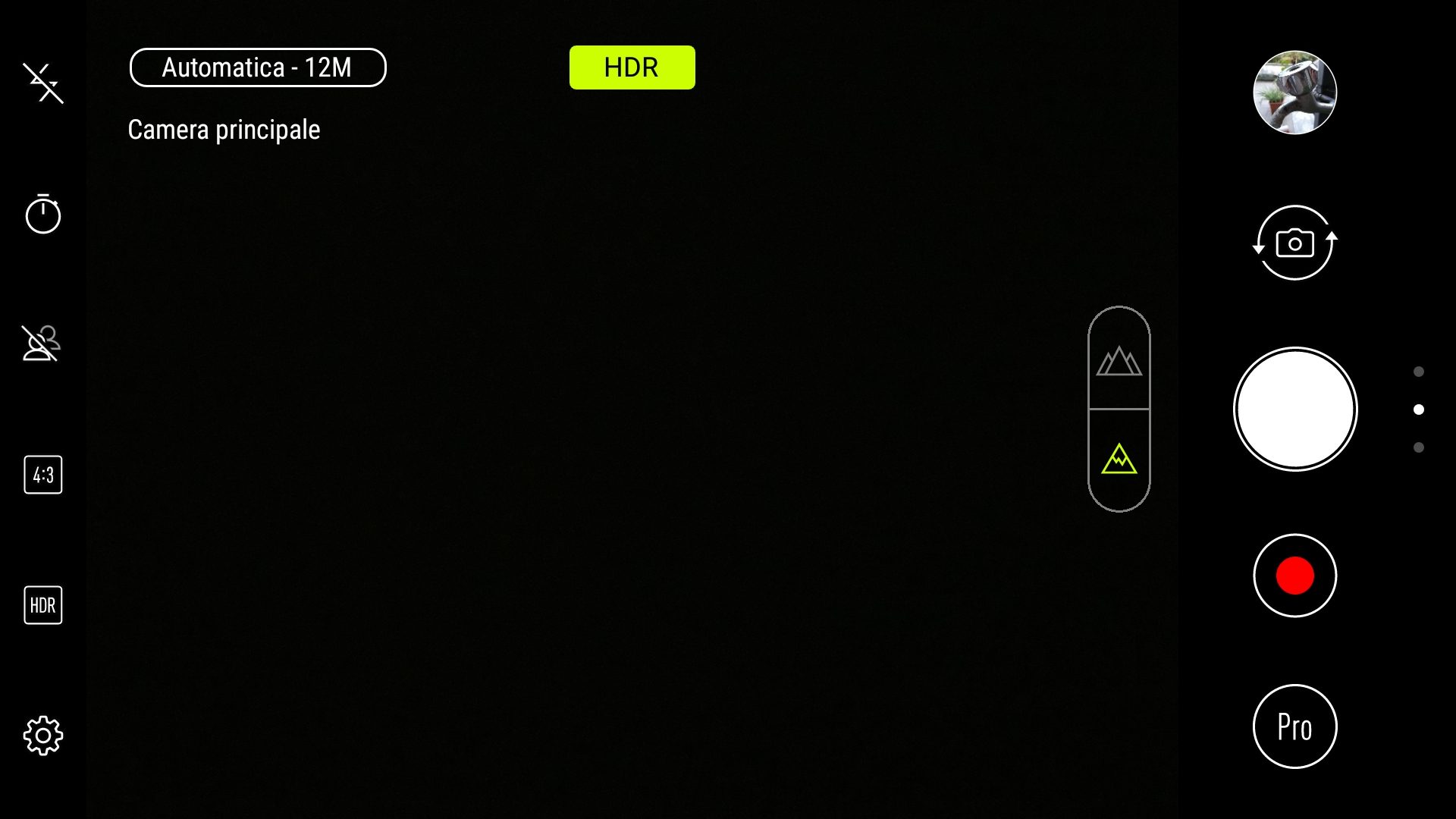 L’interfaccia della fotocamera è stata molto semplificata e presenta in prima funzione tutte le opzioni più utili tra cui la modalità video, pro (manuale), ritratto, formato, flash, HDR e timer.