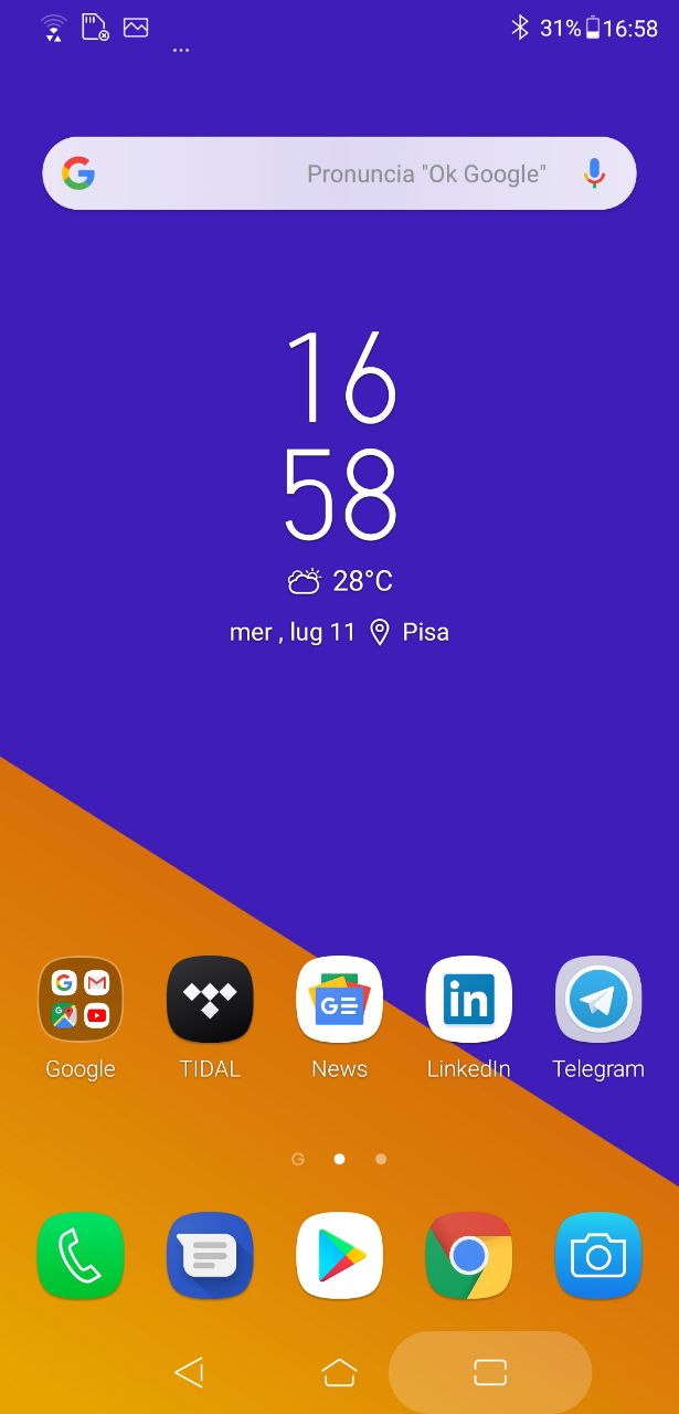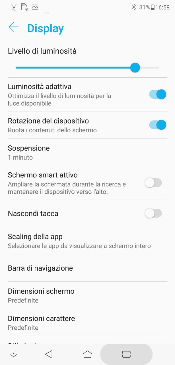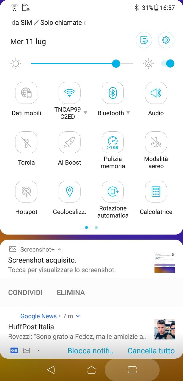 Con le versioni precedenti del software non era in alcun modo possibile nascondere la tacca attraverso l’inserimento della barra di stato completamente nera, che invece ora è attivabile dalle impostazioni. Se dobbiamo dire la verità però noi non ci penseremo minimamente ad attivarla visto che già non abbiamo un design completamente simmetrico, vista la presenza di cornici più sottili rispetto ad altre, se poi ci aggiungiamo un display stondato inferiormente e un taglio netto invece superiormente, che tra l’altro prende anche una piccola porzione di stondatura, beh forse sarebbe meglio tenere il notch e via. In alcuni casi però è la stessa ZenUI che decide di nasconderlo, quando potrebbe risultare effettivamente frustrante, un esempio è la navigazione web, Chrome infatti preferisce avere la barra nera anziché la gobba. La presenza delle notifiche e di tutte le altre informazioni però sono gestite, a nostro avviso, abbastanza bene. Asus ha infatti deciso di aggiungere dei puntini sospensivi, laddove le icone non trovano spazio, in modo da inviare l’utente a tappare sulla barra di stato e rivelare tutte le informazioni apparentemente invisibili. Piccolo difetto estetico invece presente alle estremità laterali. A destra infatti l’orario sembra quasi aderire perfettamente alla cornice, mostrando quasi alcuni numeri “tagliati” dal display, mentre sul lato sinistro le notifiche vengono leggermente allontanate, in modo da non avere lo stesso effetto. Parliamo di dettagli che l’utente comune non andrà sicuramente a notare e comunque di sottigliezze risolvibili tramite software. Nelle impostazioni è possibile modificare la temperatura colore in maniera molto dettagliata, anche se crediamo non ce ne sia realmente bisogno. Non manca l’opzione filtro luce blu, d’aiuto sopratutto durante la visione di contenuti di notte.