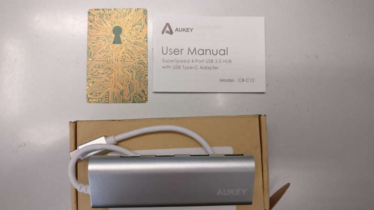 Confezione abbastanza spartana contenente solamente l’hub, un piccolo manuale utente e una card utile per la garanzia del prodotto. Il design è molto curato, Aukey CB-C12 si presenta con una finitura in alluminio color argento con un cavo abbastanza resistente. Il suo funzionamento è immediato, una volta collegato non necessita di driver di installazione. Oltre ad offrire connessioni USB 3.0 ha la retro compatibilità per device più datati (USB 2.0/1.1/1.0). La sua velocità di trasferimento è molto buona e in condizioni massime può raggiungere i 5Gbps. Ottima anche la funzionalità che permette di proteggere i dispositivi collegati in caso di sovra alimentazione.