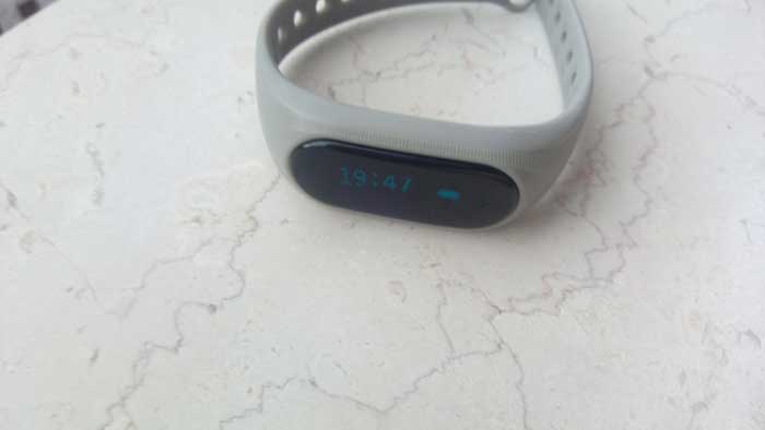 Importante è poi la presenza della certificazione IP65, che lo rene resistente alla polvere al livello massimo ed anche resistente all’acqua. Non potete utilizzarlo per nuotare e nelle immersioni, ma potrete usufruirne tranquillamente sotto la pioggia o sotto la doccia. Per quanto riguarda il display, abbiamo uno schermo OLED dalla diagonale di 0,88 pollici che si può facilmente attivare con un tocco sulla parte destra per fargli mostrare le informazioni. Lo schermo mostra i dati in colorazione verde acqua ed ha una buona definizione: si vedono i “pixel” solo se vi si è estremamente vicini. Vogliamo sottolineare che per uno smartband venduto a questo prezzo, che uno schermo sia presente è già un miracolo.