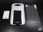 Anteriormente l’aspetto è veramente molto bello e la cover non ‘appesantisce’ affatto le linee del Galaxy S III, sebbene lo protegga solo in parte rimanendo gli angoli, a nostro giudizio, forse un po’ esposti ad eventuali cadute; leggermente a rischio anche la sicurezza del display che purtroppo, in questo smartphone, non eccelle in quanto a resistenza nonostante il costruttore l’abbia dotato di Gorilla Glass II.