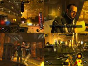 Nonostante gli sforzi dei developers, l’interfaccia touch non offre come è lecito attendersi la stessa giocabilità di un joypad, e forse a livello di sensibilità nelle sequenze di combattimento si poteva fare un po meglio, ma con un po di esperienza in-game è possibile prendere le redini della situazione e godere pienamente del titolo. In ogni caso, il sistema di controllo è completamente ottimizzabile da menù opzioni, offrendo più tipologie adatte ad ogni gusto. Per il movimento niente di più semplice, lato sx del display avanzamento e scarto laterale, lato destro per la gestione della visuale. Usati in concomitanza offrono un controllo preciso, ma il problema nasce della immense possibilità offerte in termini di controlli e azioni possibili, un problema decisamente piacevole se consideriamo che potremo avanzare normalmente, in modalità furtiva, sfruttare le coperture, visualizzare un radar la cui precisione sarà influenzata dai nostri potenziamenti, lanciare granate, usare kit medici ed altri oggetti , cambiare armi al volo, o interagire con gli elementi dell’ambiente.Sconsigliabile un approccio diretto e da spaccone con i nemici, non è il genere di gioco adatto e rischiamo di avere vita corta. Molto meglio un atteggiamento furtivo stile stealth (alla Metal Gear Solid), colpi mirati ed attacchi alle spalle, in quanto l’intelligenza artificiale risulta decisamente sofisticata e la fuga potrebbe restare l’unica soluzione una volta scoperte le nostre intenzioni. Nelle fasi di dialogo apparirà a schermo un menù a scelta multipla, dove potremo selezionare un atteggiamento diverso che scatenerà reazioni consone. Un Titolo in sintesi non adatto ai casual gamer, che offre un ottimo spunto sulle potenzialità future di titoli complessi su tablet, terreno migliore per Deus Ex rispetto agli smartphone, per via della complessità dei controlli a schermo.