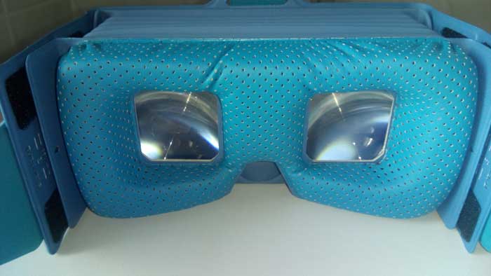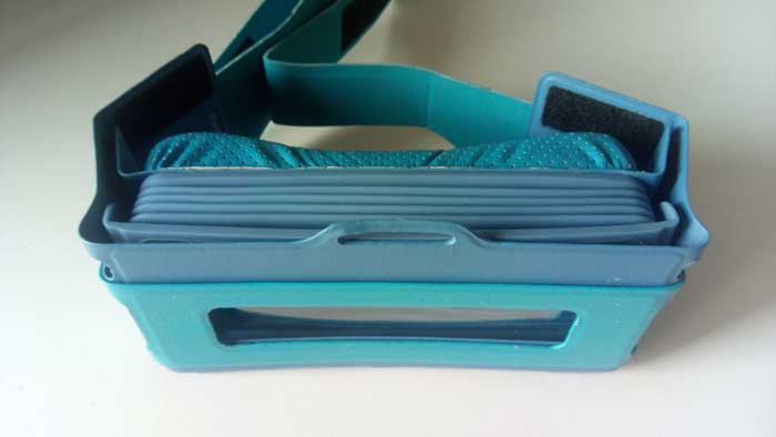 Vengono lasciati scoperti tutti gli accessi per le porte ed anche per i tasti laterali, oltre che per la fotocamera. In più nella parte frontale, dove ci sono le lenti, è presente un ampio foro per poter cliccare anche sul display. Caratteristica molto utile dato che non c’è un magnete come alcuni altri visori basati su Google Cardboard, anche se per la comodità non se ne sente particolarmente la mancanza. Da indossare è abbastanza ergonomico con tre fasce a strappo che si riescono adattare bene alla testa e grazie alla già citata leggerezza oltre alla comoda spugna per gli occhi.