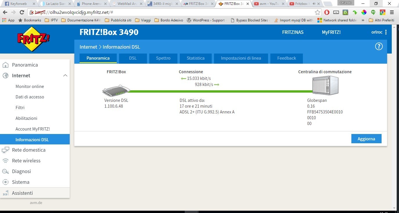 Nel menu Panoramica del Fritz!OS è inoltre possibile monitorare dettagliatamente la qualità della linea ed addirittura scoprire a quale apparato in centrale siamo connessi (nel nostro caso un apparato Globespan).