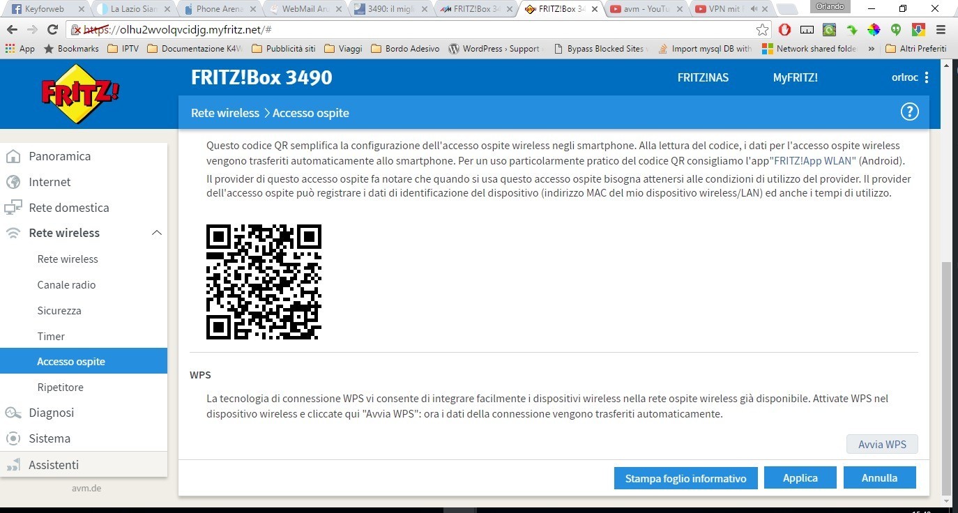 Per quanto riguarda la rete wireless, il Fritz!Box 3490 propone l’originale utilizzo di codici QR per la rete principale (2.4 GHz e 5 GHz) e l’eventuale rete ospiti se presente, per facilitare l’accesso da parte di nuovi dispositivi alla rete, senza così dover configurare a mano la connessione.