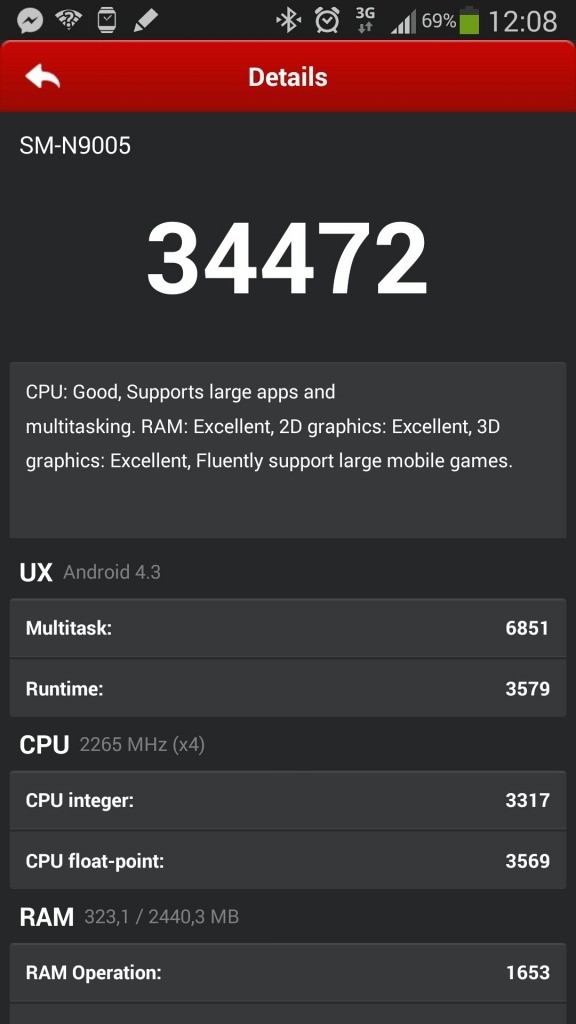 Le prestazioni del dispositivo sono ovviamente sempre ottime e non abbiamo riscontrato alcun rallentamento in qualsiasi condizione d’uso, passando dai giochi più complessi ai vari benchmark quali ad esempio AnTuTu Benchmark, che ci ha restituito un punteggio di 34.472, in linea con i top di gamma della concorrenza.