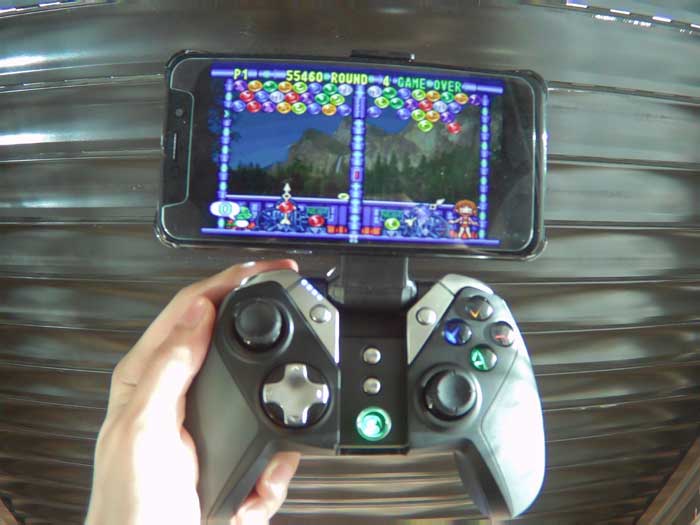 Ciò vuol dire che si presta benissimo anche da controller per le TV Box, in realtà virtuale e per altri tipi di dispositivi Android che non sono dotati di schermo touch screen. La batteria è ricaricabile al litio, ha una capacità di 800 mAh ed è presente anche un indicatore LED che ci informa sullo stato della carica e sulla percentuale rimasta. L’autonomia dichiarata è di circa 18 ore, e dobbiamo dire che nei test in condizioni standard di utilizzo e non stressandolo troppo le ha raggiunte tranquillamente. Grazie ad una applicazione chiamata Happy Chick potrete poi avere in una sola applicazione gli emulatori di tutte le console emulabili sul sistema operativo del robottino verde (PlayStation, Nintendo 64, PSP ecc). Tutto con la massima compatibilità e con configurazioni di tasti analoghe ai joypad di tali console.
