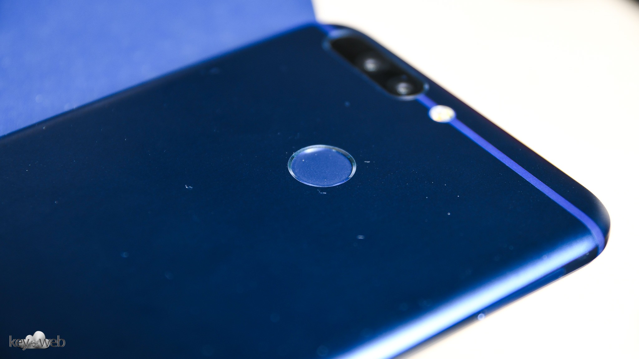 Il posteriore è molto minimal, con due bande in plastica che ospitano le antenne del dispositivo. In alto a sinistra vi è una porzione in vetro che racchiude la doppia fotocamera ed il sensore di messa a fuoco laser mentre poco accanto vi è il flash-LED dual-tone. Centralmente, poco in basso, è presente il sensore per il riconoscimento delle impronte digitali, leggermente incavato per facilitarne il riconoscimento, che funziona egregiamente sbagliando raramente il riconoscimento.