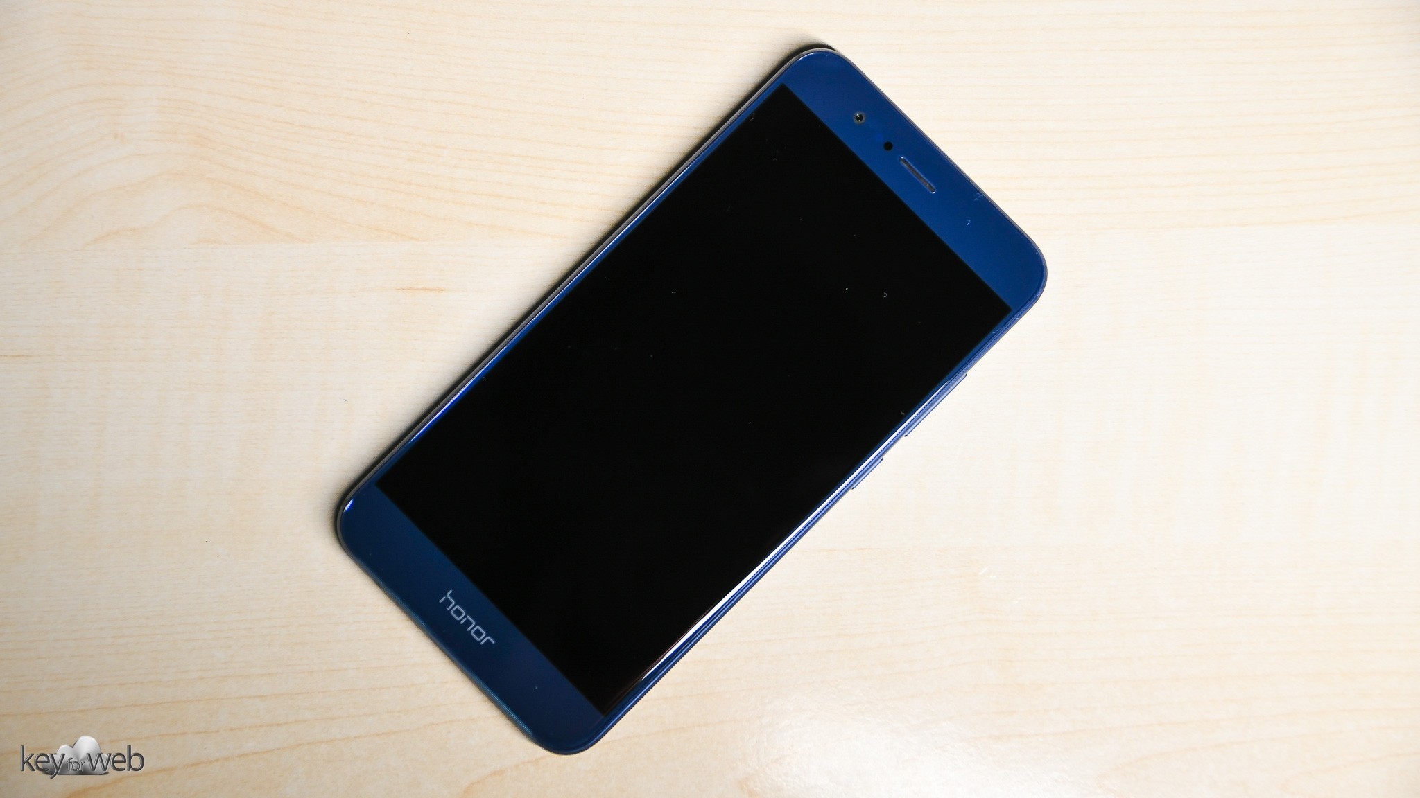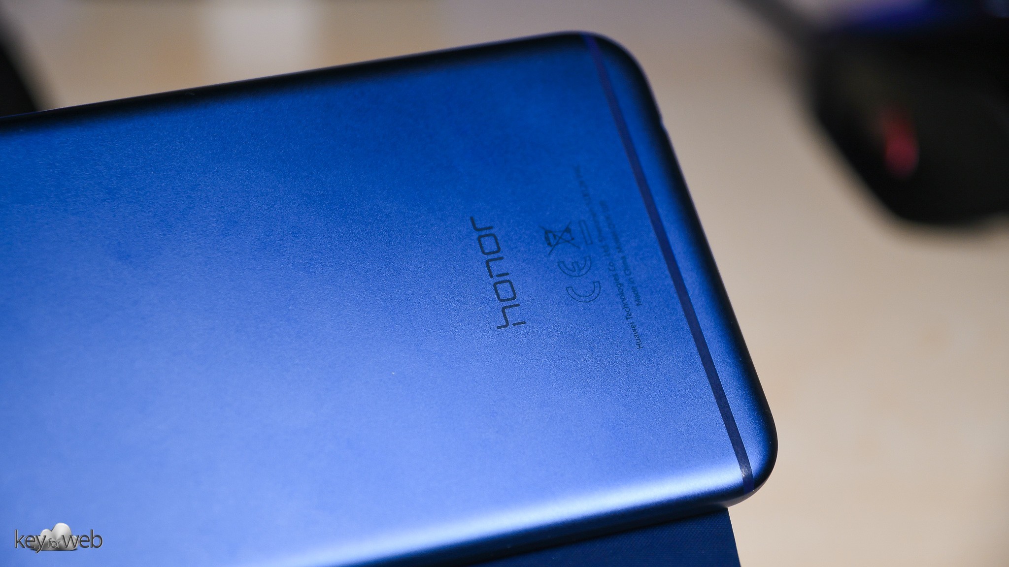 Sulla parte frontale bassa vi è il marchio Honor argentato mentre in alto un piccolo led di notifica riposto nella capsula audio interna, i sensori di prossimità e luminosità e la fotocamera frontale.