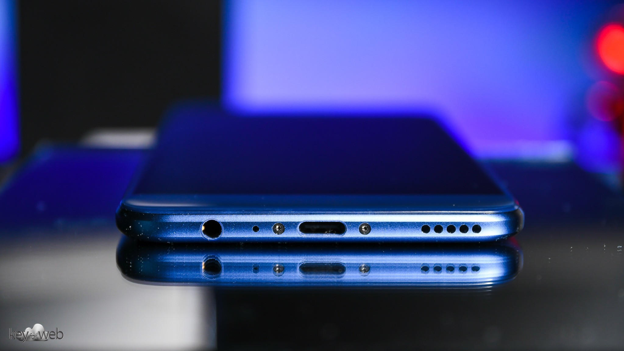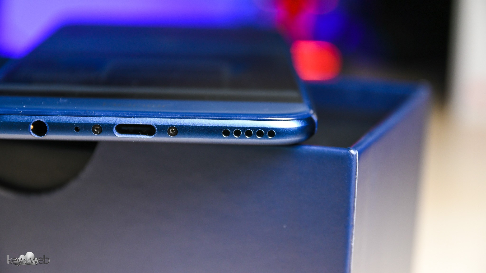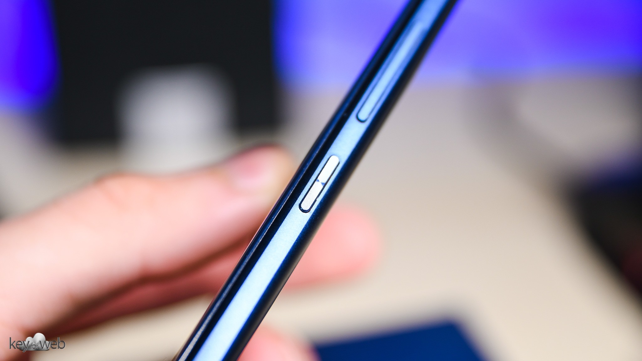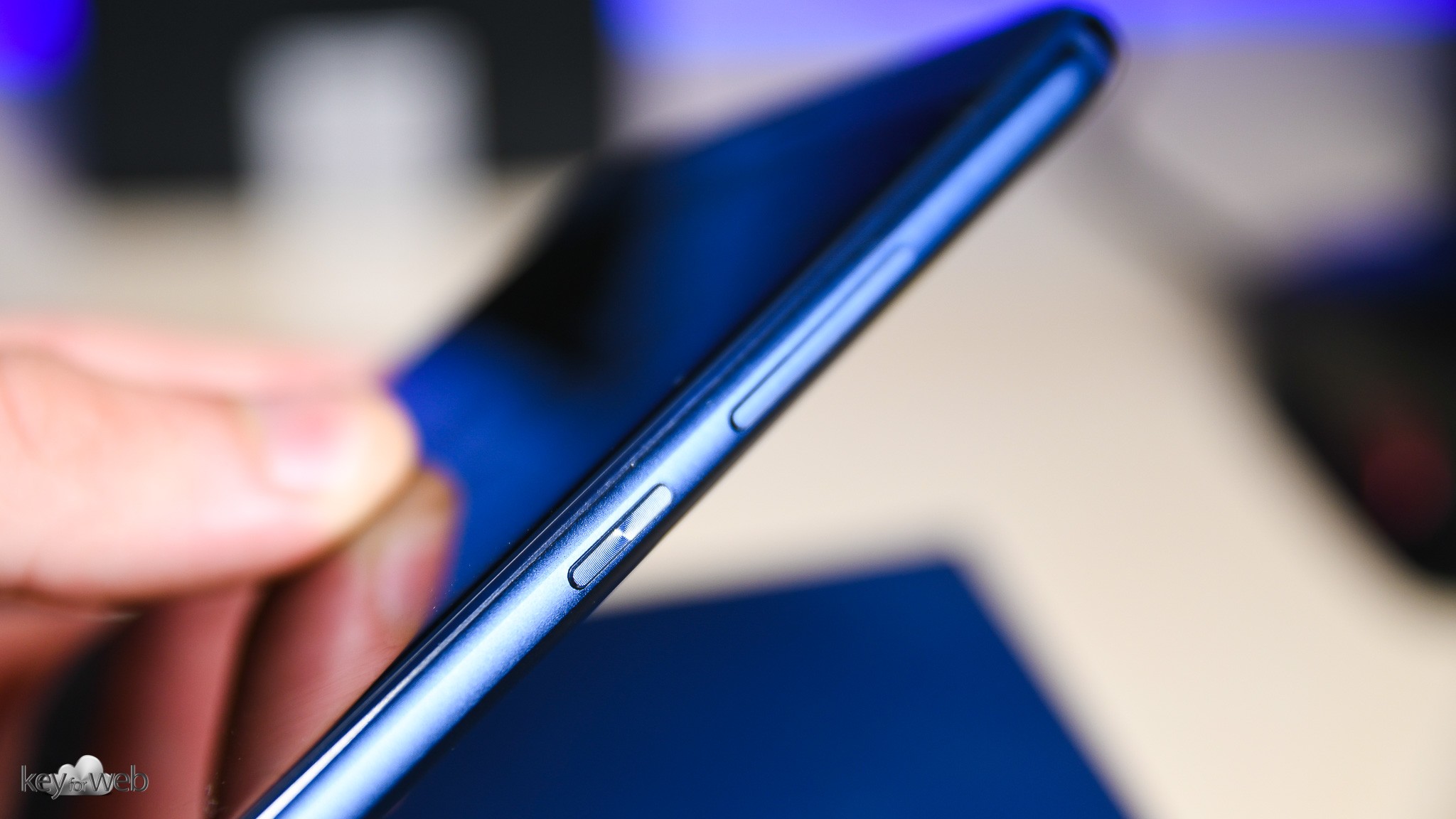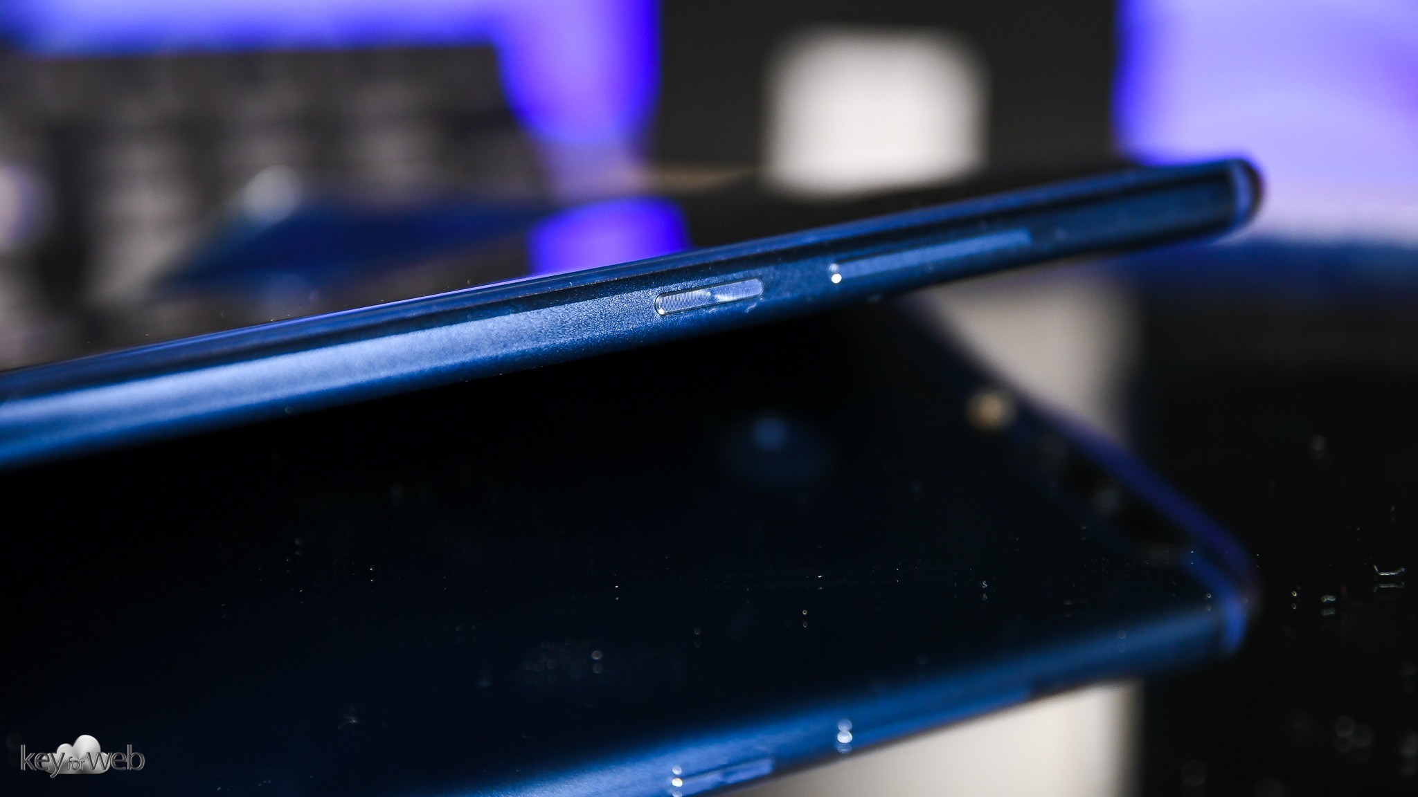 Tasto di accensione zigrinato e bilanciere del volume sono posti sulla parte destra del dispositivo. In basso vi è lo speaker principale, la porta di ricarica e scambio dati USB Type-C, affiancata da due viti di assemblaggio, il primo microfono ed il jack audio da 3,5mm. Sulla parte sinistra vi è il carrello per l’inserimento di nano-SIM e micro-SD mentre in alto il secondo microfono e la porta IRDA per comandare vari dispositivi.