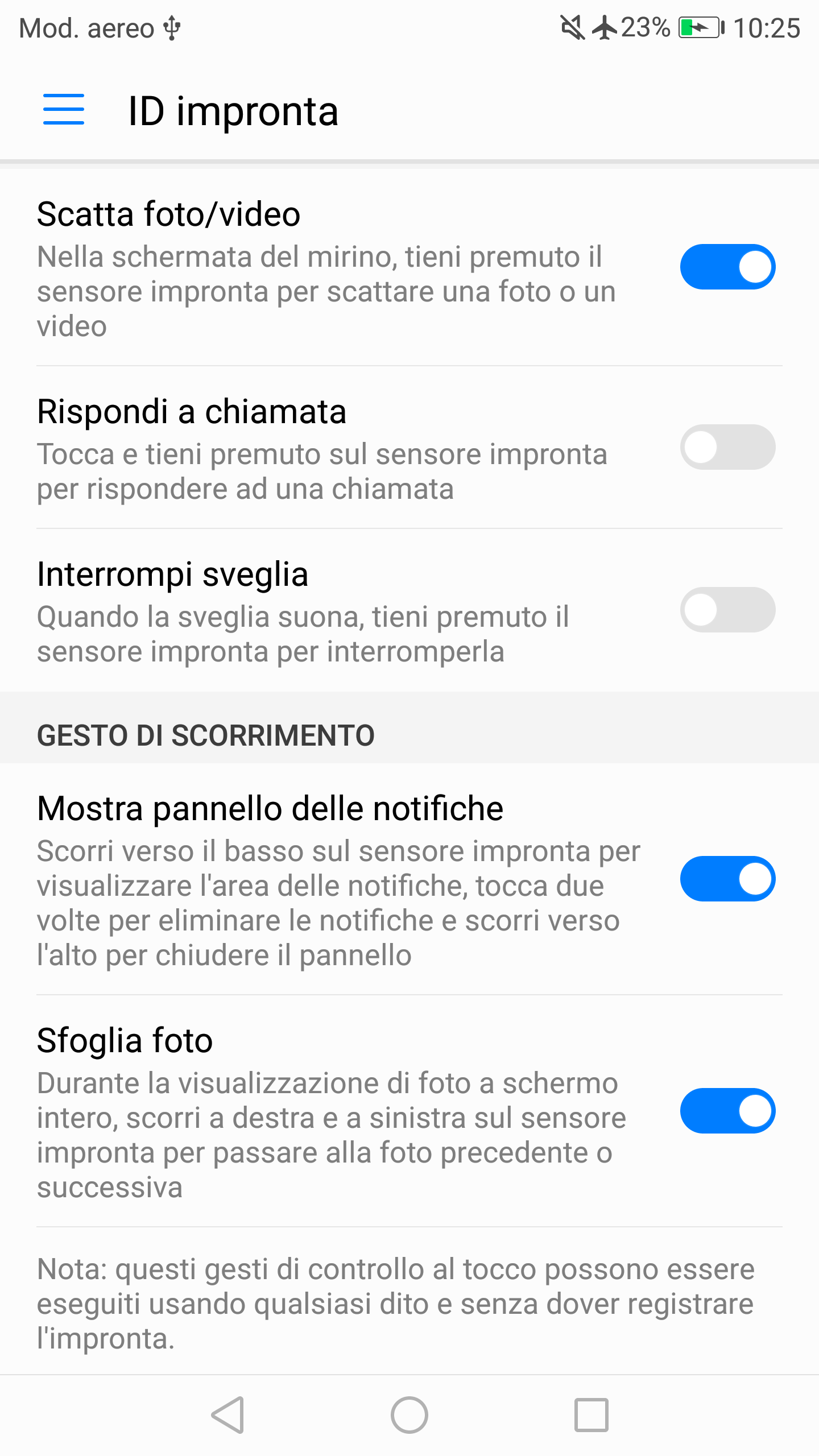 Comode le gesture eseguibili sul sensore per il riconoscimento delle impronte che ci permettono di estendere la barra delle notifiche o di scorrere le foto in galleria senza toccare il display.