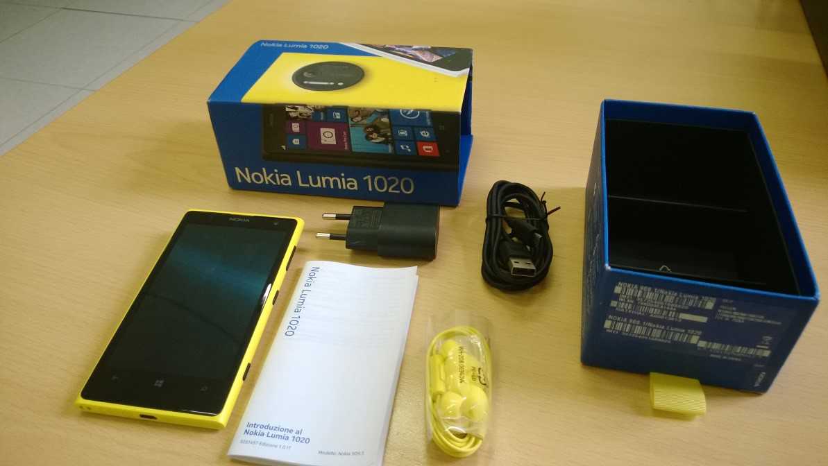 Nella scatola del Nokia Lumia 1020, troviamo il classico equipaggiamento, per cui oltre al dispositivo, troviamo il caricabatterie, un cavo microUSB-USB, la classica “chiavetta” per l’estrazione della slitta per la microSIM , la manualistica e le cuffie in tinta di tipo in-ear.