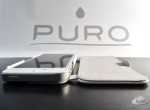La confezione è la classica proposta da Puro, con il foro sulla parte anteriore in modo da poter apprezzare la qualità dei materiali. La custodia è infatti in un elegante ecopelle ed è disponibile in tre colori: Bianca (come quella che ci è arrivata per la recensione), Nera e Blu.