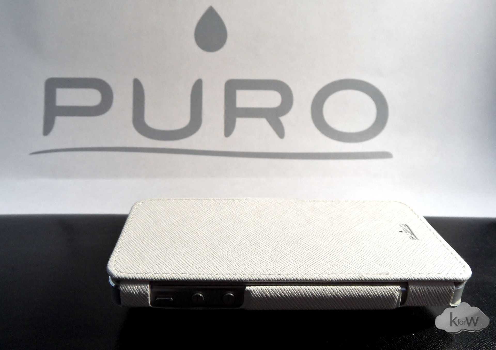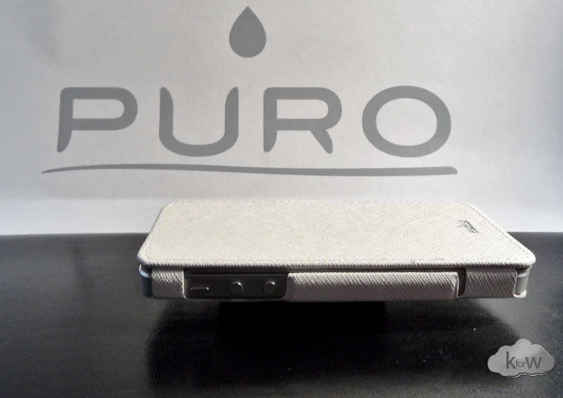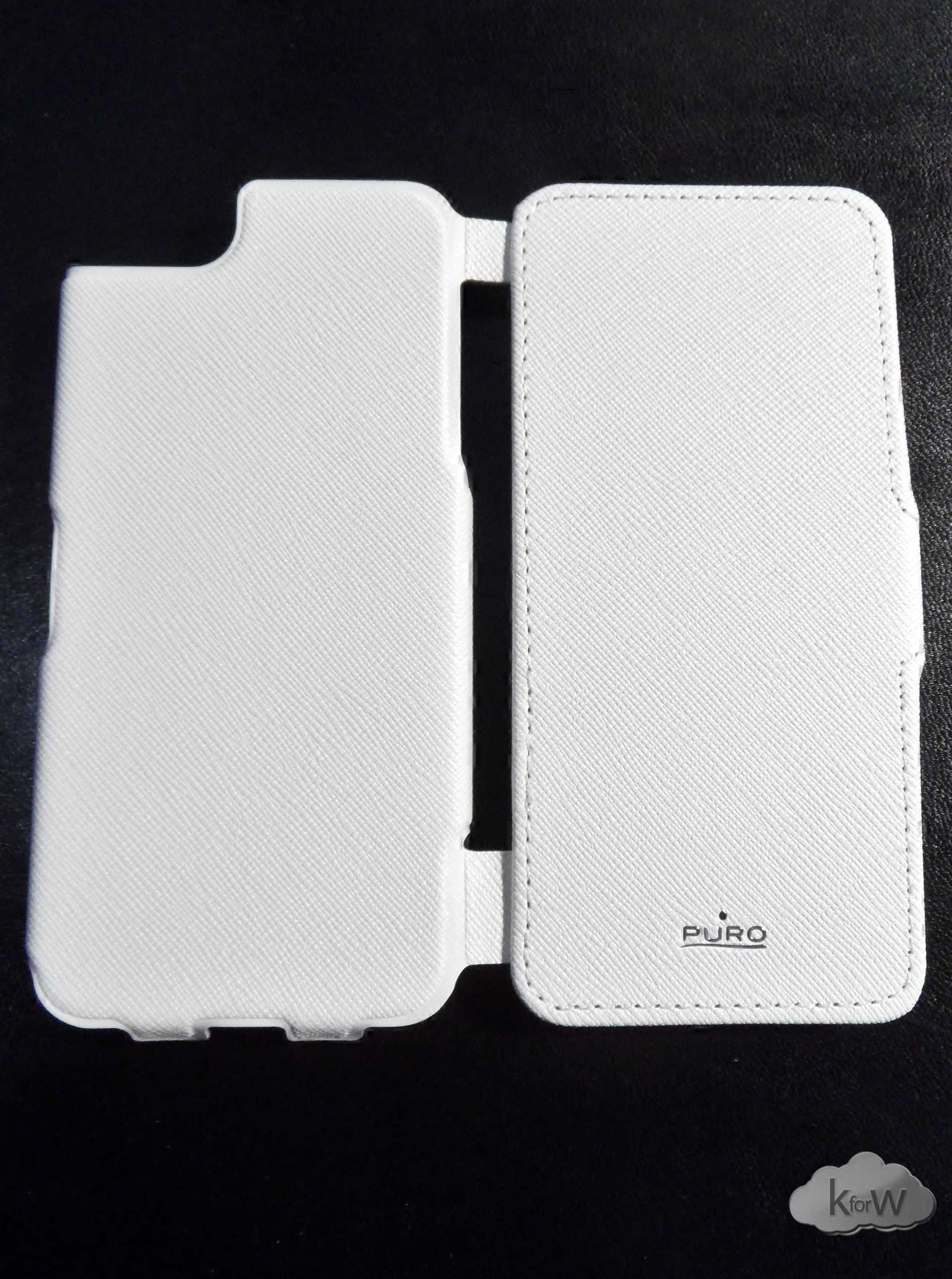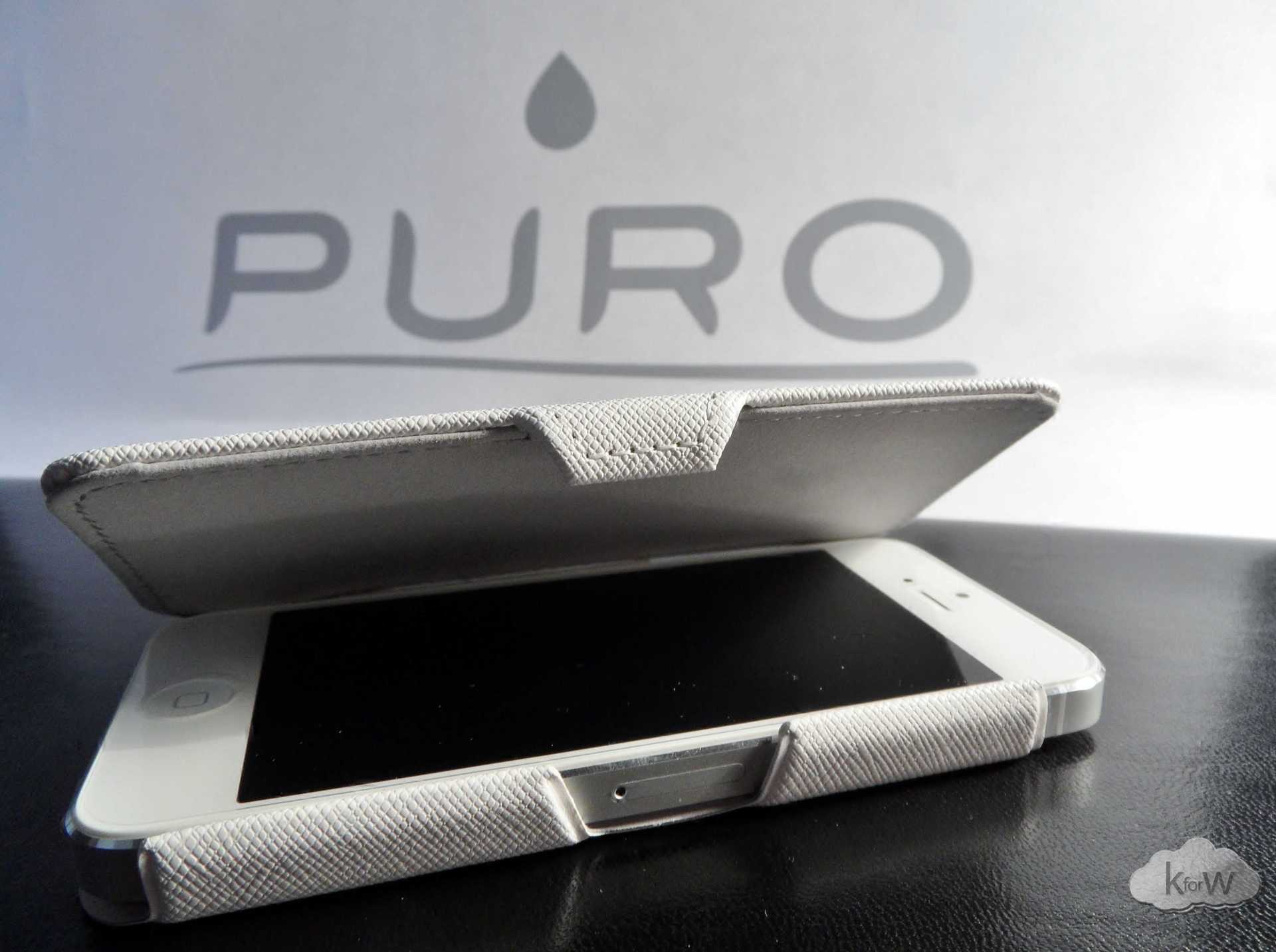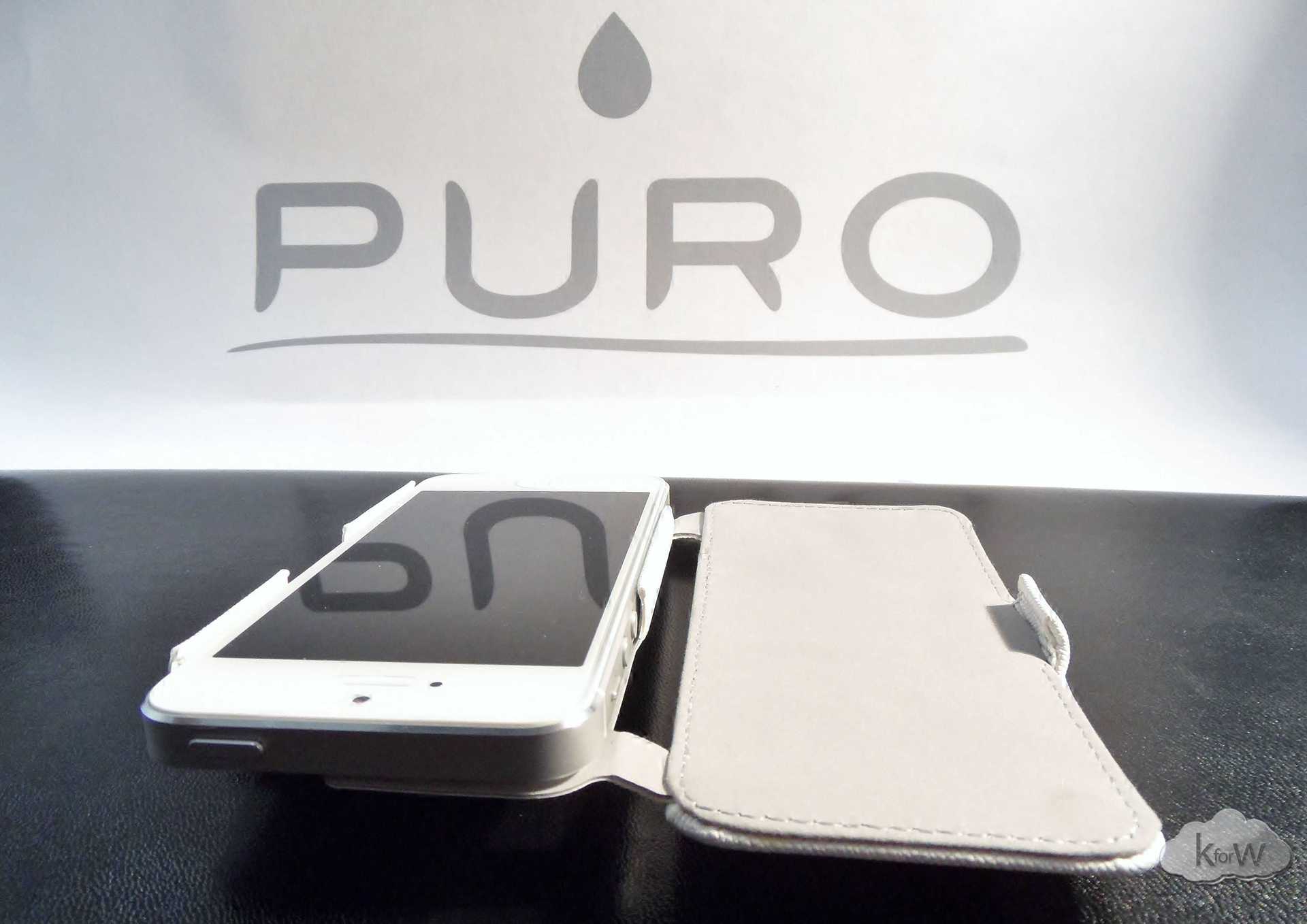La parte frontale della Booklet Ultra Sim è liscia e risalta grazie al logo Puro stampato sulla parte inferiore, mentre sul retro copre completamente l’iPhone 5 lasciando però libera sia la fotocamera che il flash led del device.