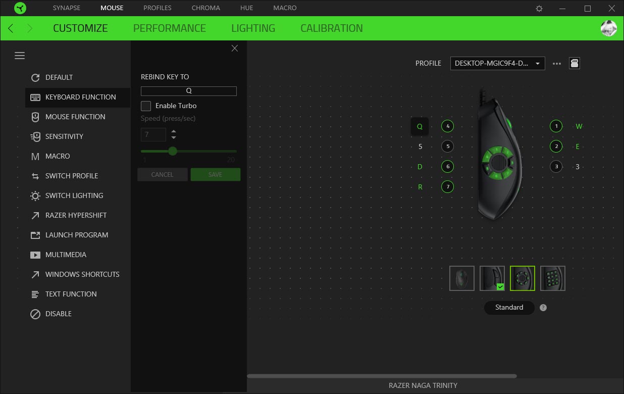 Il software permette non solo di configurare i tasti dei moduli, ma anche tutti gli altri tasti “base”(compresi il tasto sinistro e il tasto destro!) del mouse, permettendo di creare una serie enorme di comandi utili per ogni tipo di situazione.