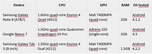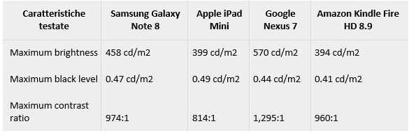 Di seguito una mini tabella di comparazione display ,con altri dispositivi della stessa fascia del Samsung Note 8.0
