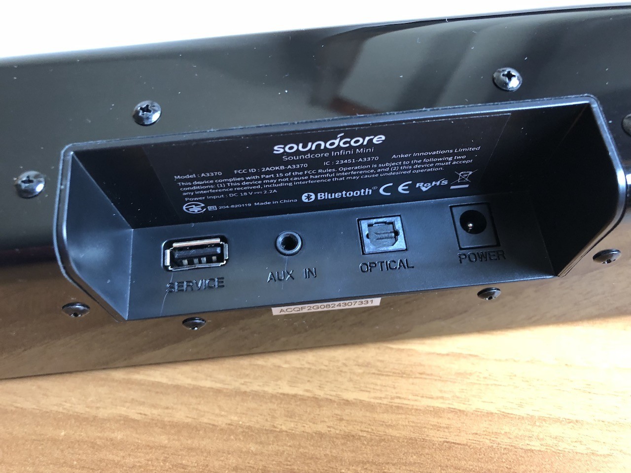 Nell’introduzione abbiamo accennato al fatto che è possibile trovare una moltitudine di accessori simili alla Soundcore Infini Mini. E allora per quale motivo avviamo scelto proprio questa? La risposta potrebbe semplicemente essere: perché Anker non ci ha mai deluso. Ed effettivamente vi possiamo assicurare che già solo il brand rappresenta una certa garanzia. Ma c’è di più. Primo punto da affrontare è sicuramente il design. La soundbar ha un aspetto classico e offre una colorazione nera lucida per tutto il perimetro, per poi preferire una finitura più opaca sul retro, dove sono presenti tutte le entrate e in particolare: una USB di tipo A, una AUX e una ottica, oltre ovviamente a quella adibita all’alimentazione. In prossimità degli angoli sono presenti due ganci che permettono l’aggancio ad una qualsiasi parete, così da garantire anche solidità se fissata al muro. Le sue dimensioni sono da 21 pollici, il che si traduce in una presenza non troppo ingombrante, ma comunque abbastanza grande da offrire un volume elevato senza alcun tipo di distorsione. Oltre alle connettività fisiche, non manca il bluetooth, nel caso in cui di decidesse di optare per un collegamento senza fili. Sul lato destro troviamo invece quattro tasti, due dei quali identificano il bilanciere del volume, mentre i restanti si dividono in accensione/spegnimento e ingresso. Ovviamente il fronte ha il solo scopo di contenere le casse, che appunto ricoprono l’intera superficie leggermente stondata. Al centro, in basso spicca il logo Soundcore che identifica appunto la provenienza del dispositivo in questione.  Interessante notare anche la presenza di un telecomando molto sottile e minimale, con una finitura nera opaca che riprende il retro della soundbar. Al suo interno sono presenti i soliti tasti relativi all’avanzamento di una traccia o alla modifica del volume, oltre alla possibilità di “equalizzare” il Soundcore Infini Mini in base all’utilizzo: MOVIE, MUSIC.