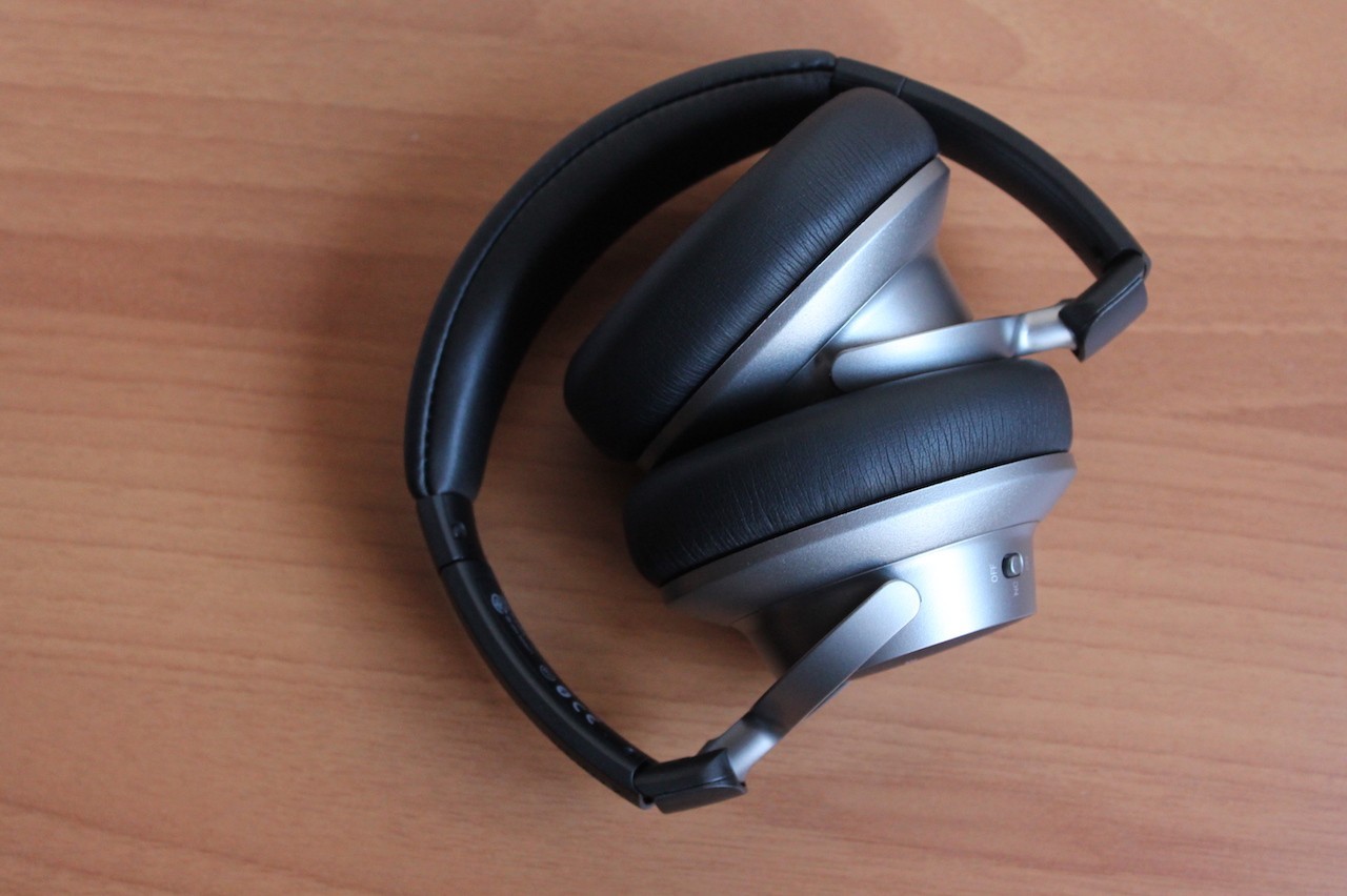 Il tutto è assemblato con una materiale plastico abbastanza resistente e ben definito in ogni centimetro. La costruzione è ottima, come lo è anche la cerniera che consente la rotazione (fino a 90 gradi) e la chiusura dei due padiglioni. Questi ultimi possono inoltre contare su due cuscinetti che circondano completamente le orecchie, riuscendo a regalare un senso di comodità incredibile. Stesso identico discorso anche per l’arco superiore, assemblato in gomma morbida e piacevole al tatto. Per farla breve, dopo un po’ di tempo non ricorderete nemmeno di averle indossate e questo non è sicuramente da sottovalutare vista la grandezza non indifferente del prodotto. I tasti presenti si cliccano abbastanza bene e riportano un feedback udibile anche dall’esterno. Tutte queste considerazioni sulla qualità dei materiali e sull’aspetto estetico variano ovviamente in base al gusto personale, ma non mi sentirei comunque di catalogarle come brutte o mal costruite.