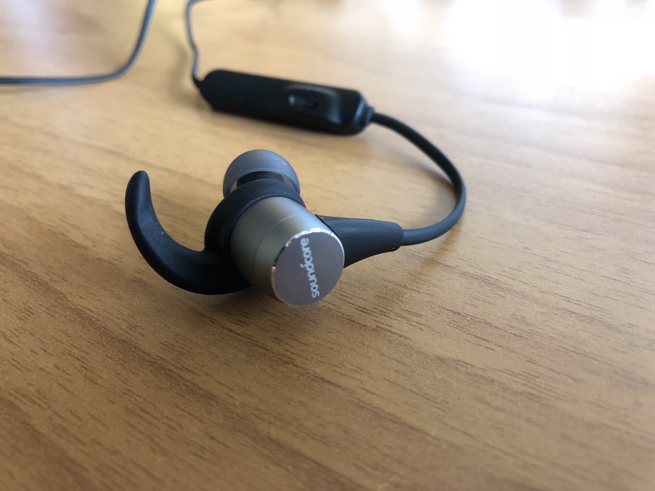 Arriviamo ora agli auricolari. Il design delle Spirit Pro non va a rivoluzionare il concetto di cuffie wireless, anzi non si discosta molto da molti altri accessori del genere. Il lavoro di Anker per quanto riguarda l’assemblaggio però non è affatto male. La tecnologia utilizzata è quella “in-ear”, il che si traduce in una lieve soppressione passiva dei rumori esterni. Generalmente non ritengo questa scelta molto comoda alle mie orecchie, ma già come era accaduto con le Tronsmart Spunky Buds, l’archetto in gomma mi permette di agganciarle alla perfezione. In definitiva, credo che la comodità sia a livelli molto alti e questo non è da sottovalutare, visto che tale prodotto è sopratutto adatto a chi desidera ascoltare musica durante l’attività sportiva. Nel corpo in colorazione grigia è presente un magnete, in modo da unire i due auricolari nel momento in cui non si utilizzano.