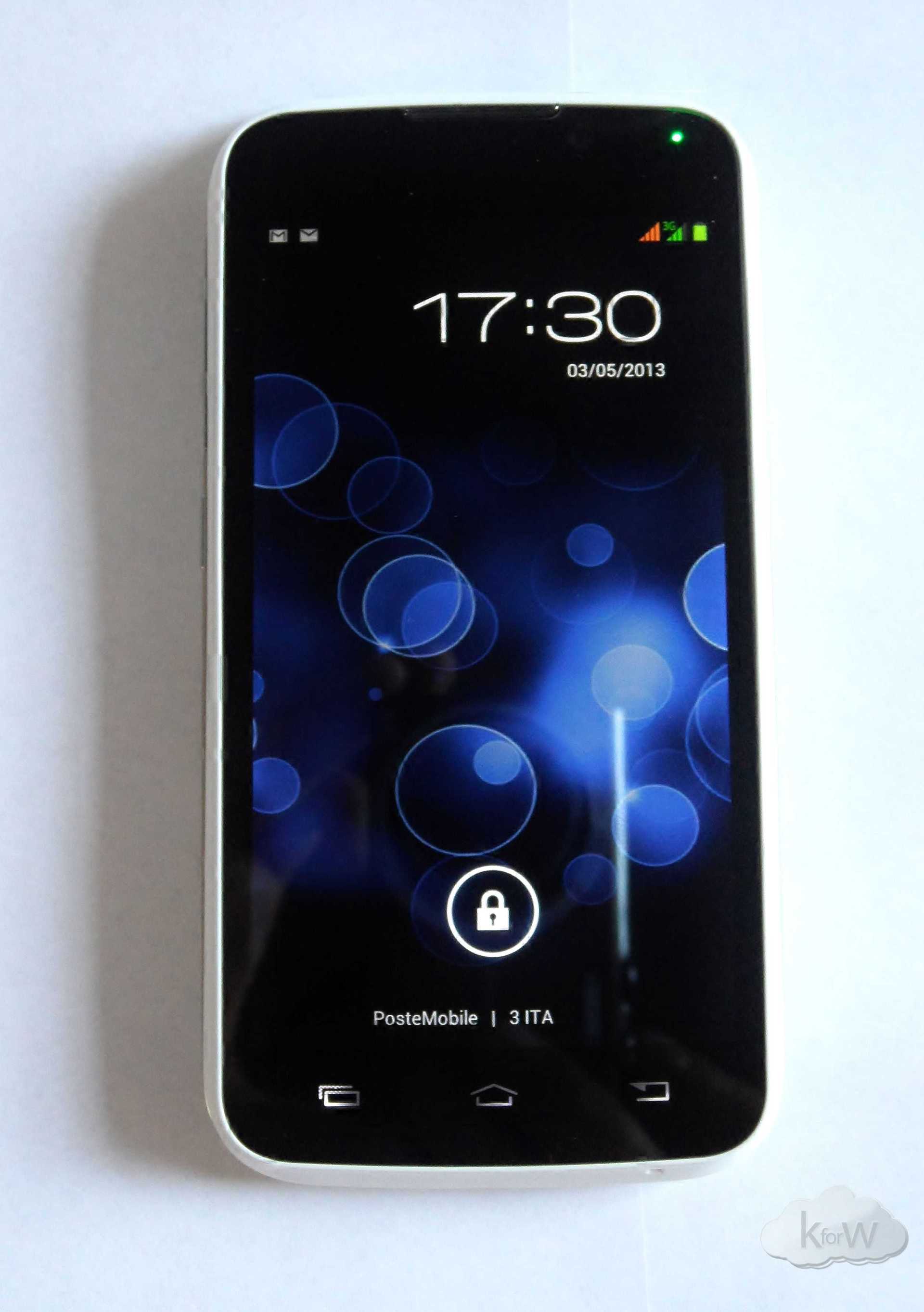 Nella parte superiore dello schermo troviamo l’altoparlante, la fotocamera anteriore da ben 3 Mpx, il sensore di luminosità, di prossimità e il led di notifica a due colorazioni; nella parte posteriore sono presenti invece il microfono e i tre tasti capacitivi.