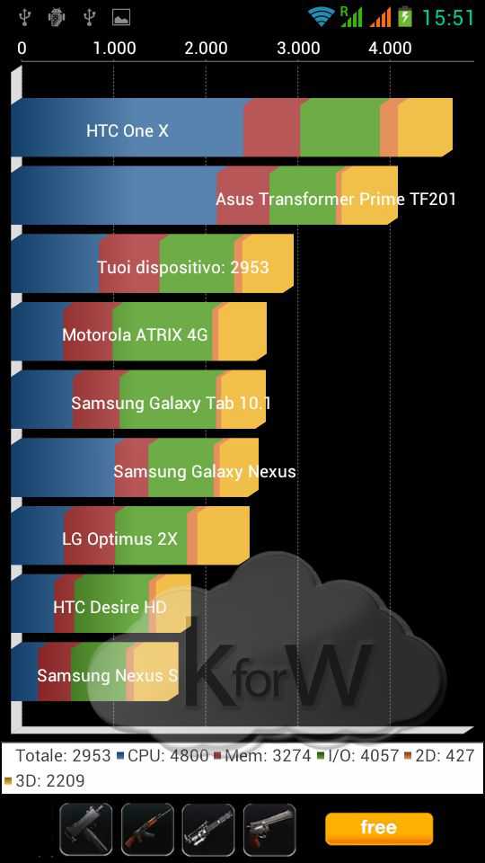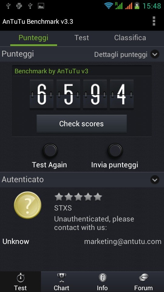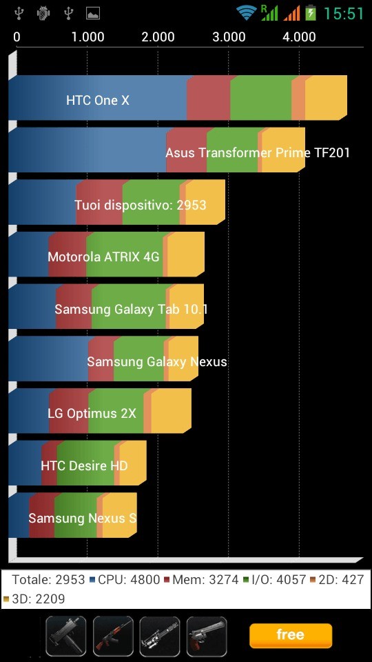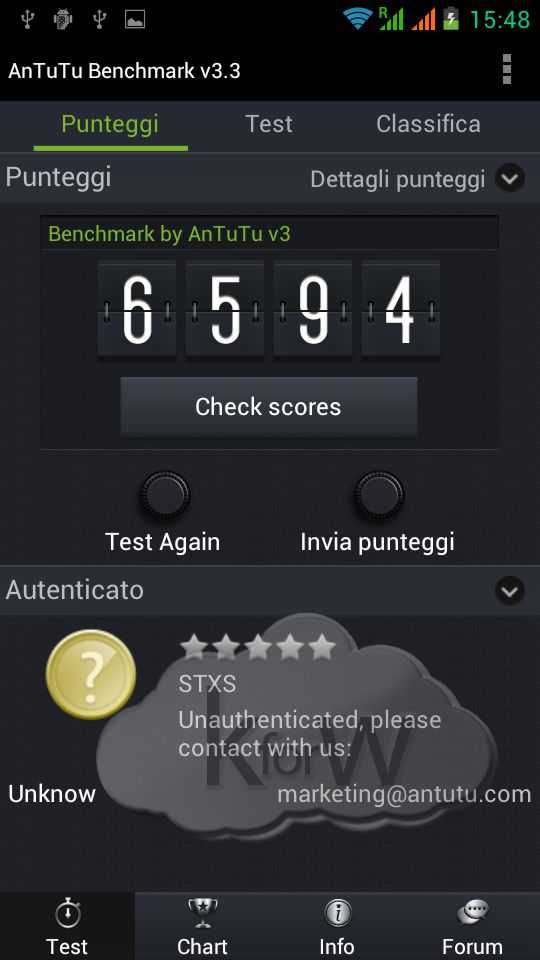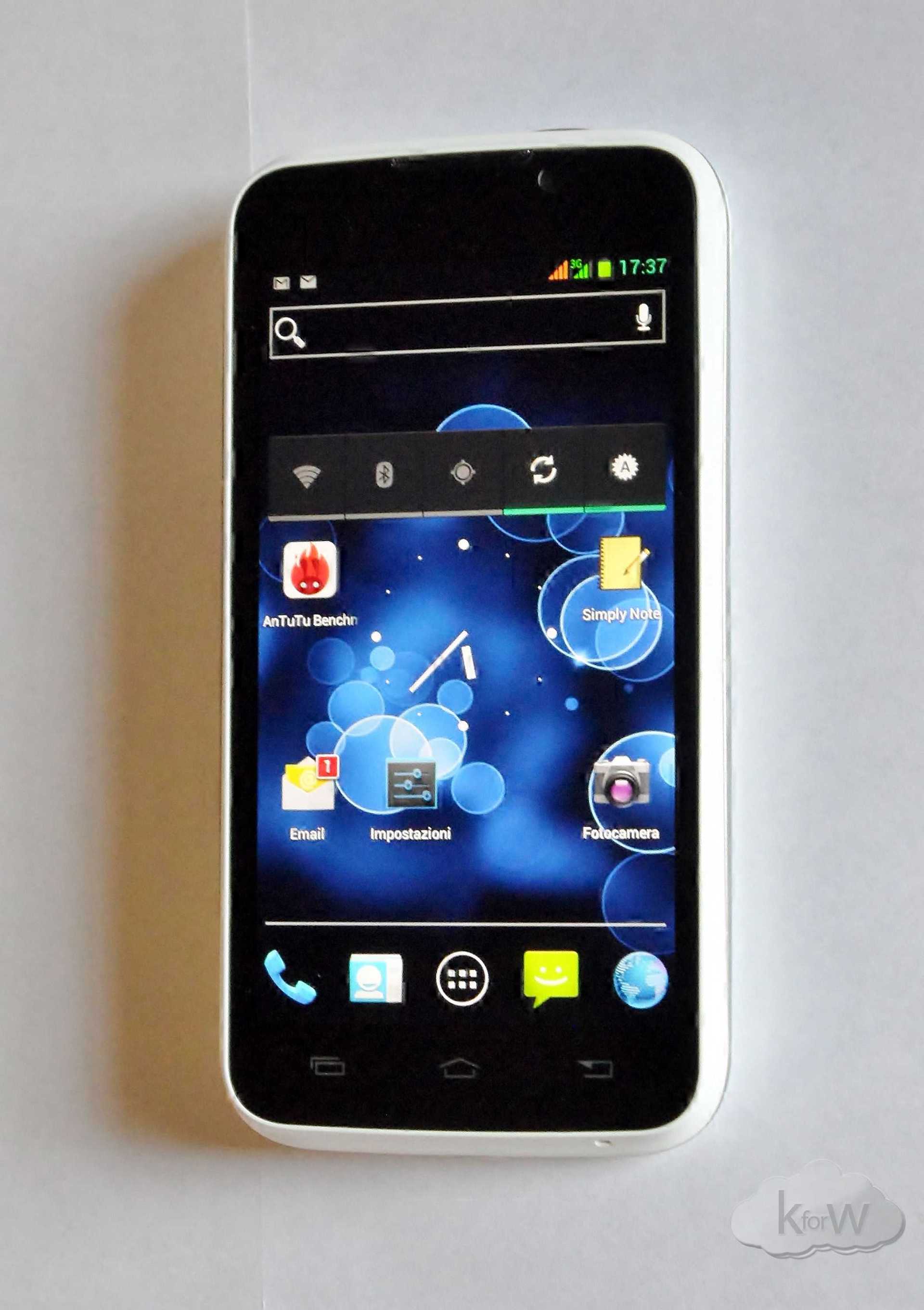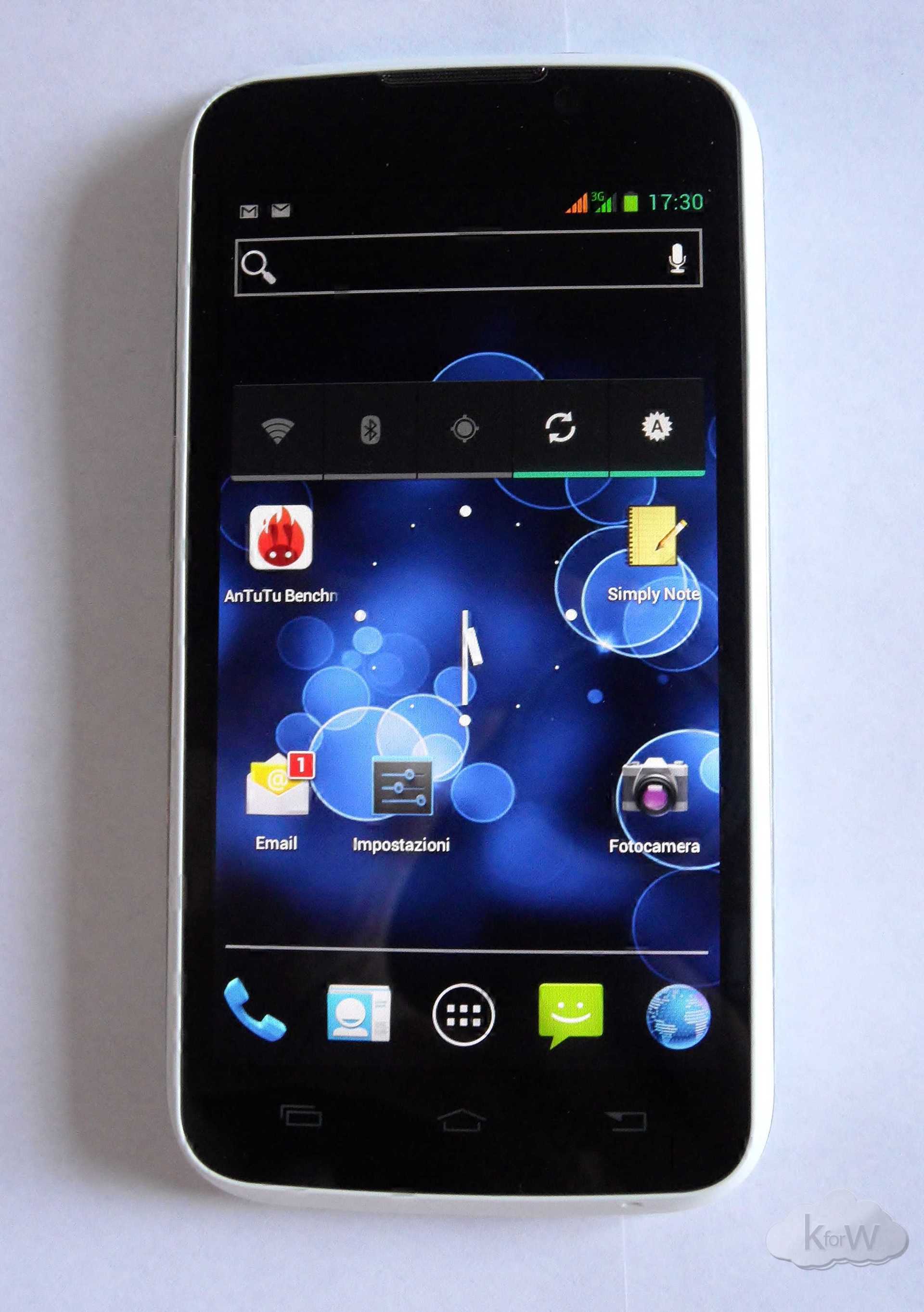 Il processore è un MT6577 Cortex A9 dual core da 1GHz realizzato dalla MediaTek che, insieme a 1 GB di Ram, garantisce prestazioni del sistema operativo piuttosto dignitose, sebbene in qualche occasione si siano verificati dei piccoli lag e qualche impuntamento, che comunque consideriamo nella norma trattandosi di uno smartphone di fascia media. Nei test effettuati con i Benchmark Antutu e Quadrant il device si è comportato sopra la media con risultati rispettivamente di 6594 e 2953.