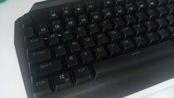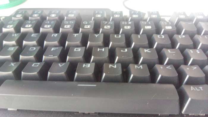 Questa tastiera meccanica presenta 104 tasti in totale, con tanto di tastierino numerico. I tasti funzione (F1, F2 eccetera), se utilizzati in combinazione con il tasto Fn fungono anche come tasti multimediali ed aumentano le loro funzionalità. Il layout della tastiera è quello americano, ma avendo impostato il layout italiano su PC non si riscontra nessun problema nello scrivere con i tasti che funzionano come su una tastiera italiana. L’unico problema è che sui tasti delle lettere accentate appaiono altri simboli disegnati (si parla solo dei simboli disegnati sui tasti, sono solo 6 i tasti coinvolti), ma basta scriverci un po’ per imparare a memoria a quali corrispondono davvero. La connessione avviene tramite attacco USB dorato.