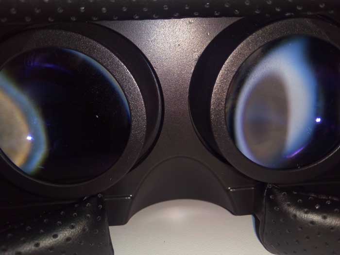 Dalla parte opposta abbiamo delle lenti che definiamo di ottima qualità in quanto robuste e cristalline. Grandissimo pregio è la presenza di un regolatore per aggiustare al meglio la distanza interfocale tra le lenti ed adattarle ai vostri occhi. Il visore vanta anche una grande ergonomia in quanto è presente una spugna ricoperta da vera pelle per avere il massimo comfort mentre lo si indossa. Le cinghie da indossare in testa sono regolabili ed elastiche, e vi assicuriamo che sono adatte ad ogni tipo di testa. Il visore si può utilizzare con Google Cardboard, ma non è presente il magnete per selezionare i contenuti nell’app. Potete però ovviare a questo problema acquistando un piccolo joypad Bluetooth che costa pochi euro ed è anche molto più comodo (vi lasciamo il link a fine recensione). Non c’è nemmeno un QR Code per l’associazione con Cardboard ma non ne avete bisogno perchè le lenti sono già perfette e adattabili di loro.