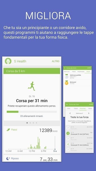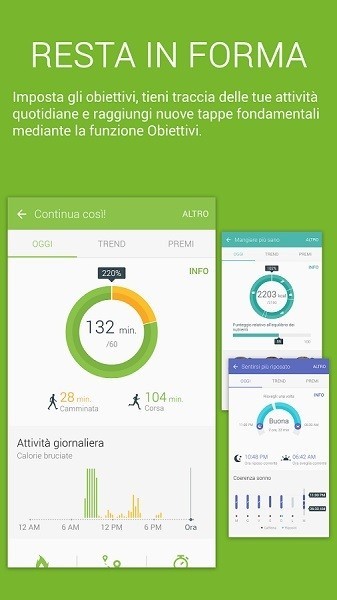 L’app Step-tracking, in generale, vede anche un miglioramento per quanto riguarda il calcolo, unendo conta-passi del dispositivo indossabile, con il proprio accelerometro del telefono (quando non si indossa il dispositivo) per un punteggio più completo e dettagliato.