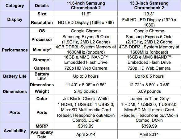 Dopo un’attesa di ben due anni e mezzo, Samsung ha annunciato due nuovi modelli di Chromebook serie 2. I nuovi Chromebook presentano lo stesso retro eco-pelle che è stato visto già sul Galaxy Note 3. Avevamo anticipato proprio ieri la notizia ed ora arriva la conferma ufficiale direttamente da Samsung.